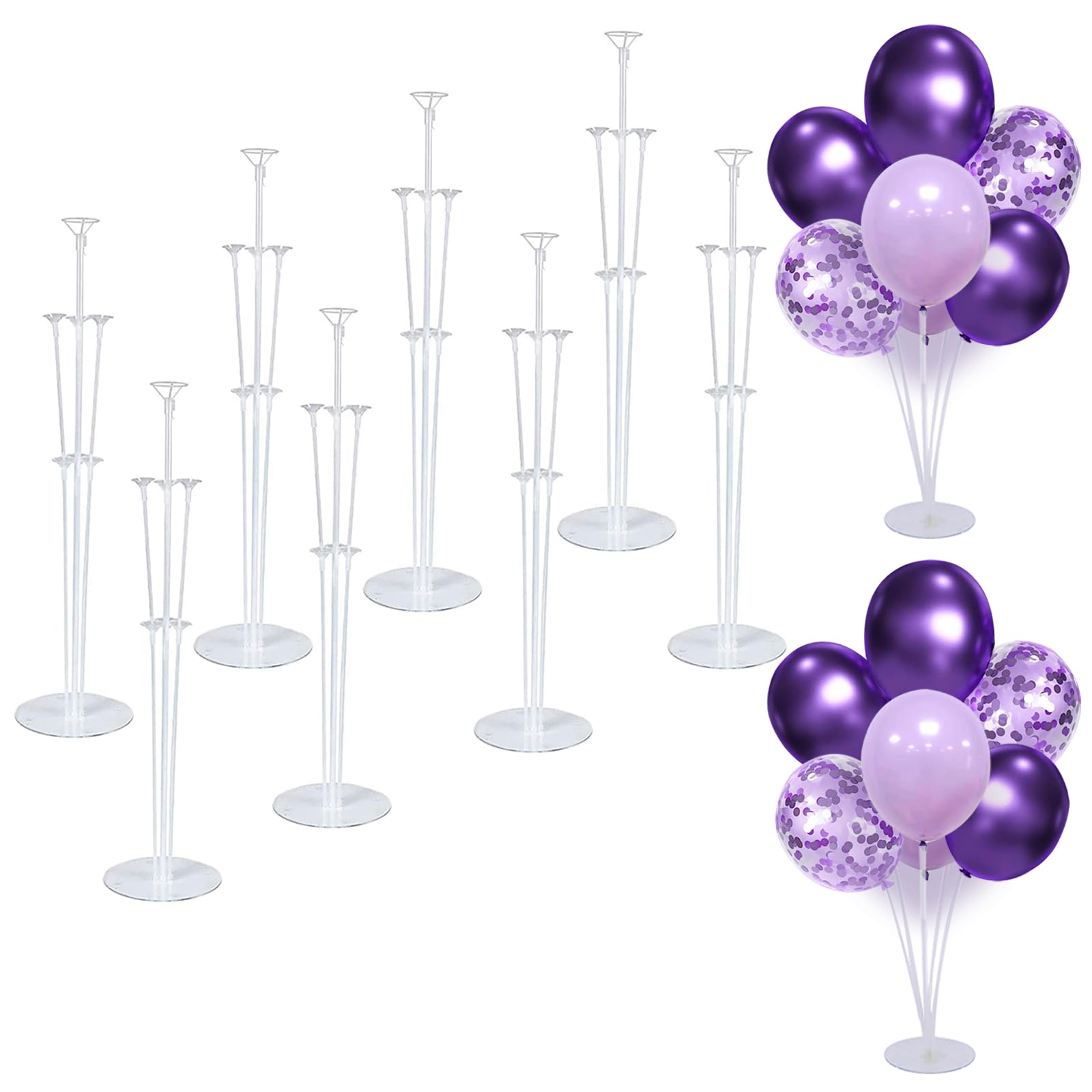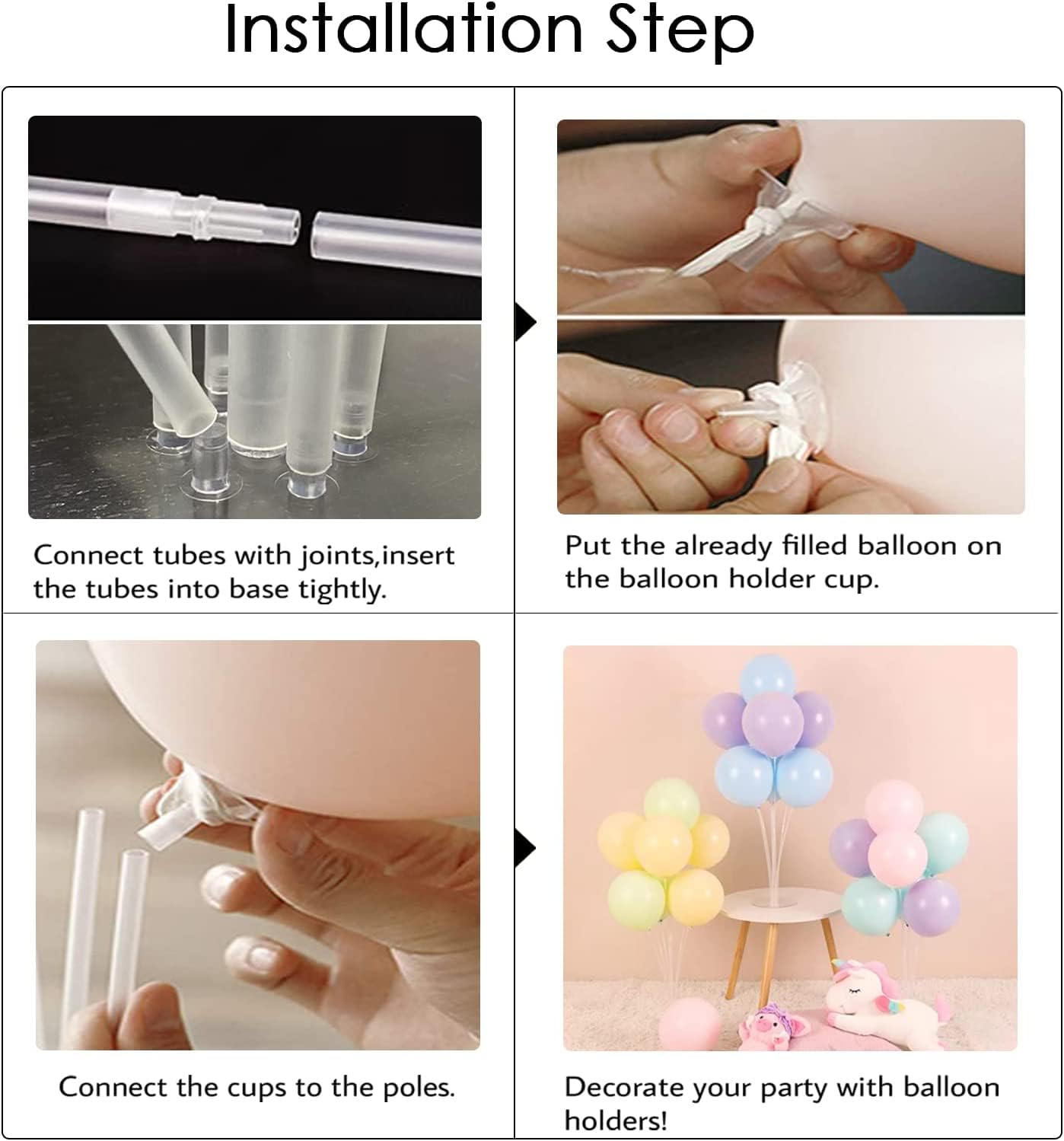 - What Inlcude:The balloon stand kits inlcude 8 sets balloon stand and each balloon stand kit contains 1 base, 7 cups, 4 joints, 8 poles (13.8 inches), and 3 poles (7.9 inches). But balloons are not included.