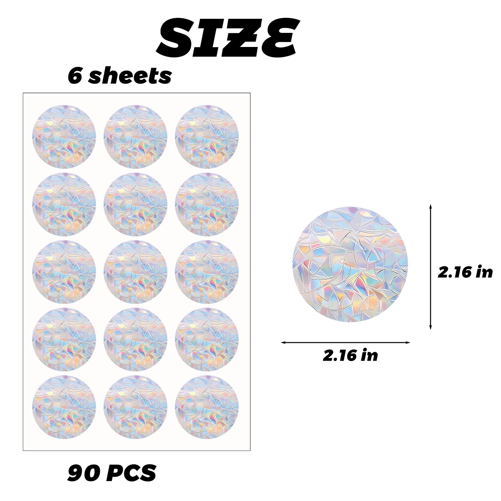 - 🌈 Rainbow Reflective Suncatcher Effect: These window clings reflect sunlight and cast beautiful rainbow prisms indoors.Double as a decorative suncatcher and practical bird deflector for windows