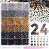 Package Content: The Purple Pink Color half pearls nail art gems charms kit includes 1 box with 24 grids, featuring a variety of sizes: 3mm, 4mm, 6mm, 8mm in different 6 colors. 1 tweezers and 1 picku