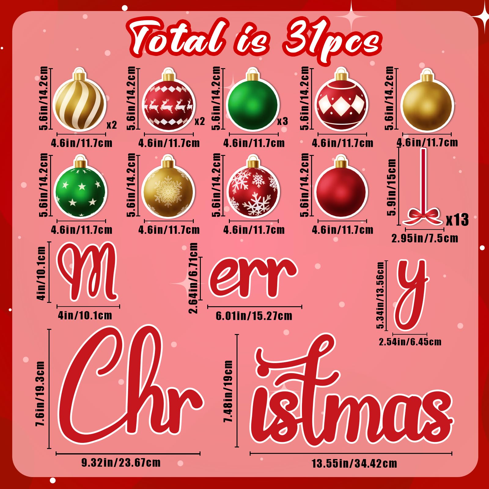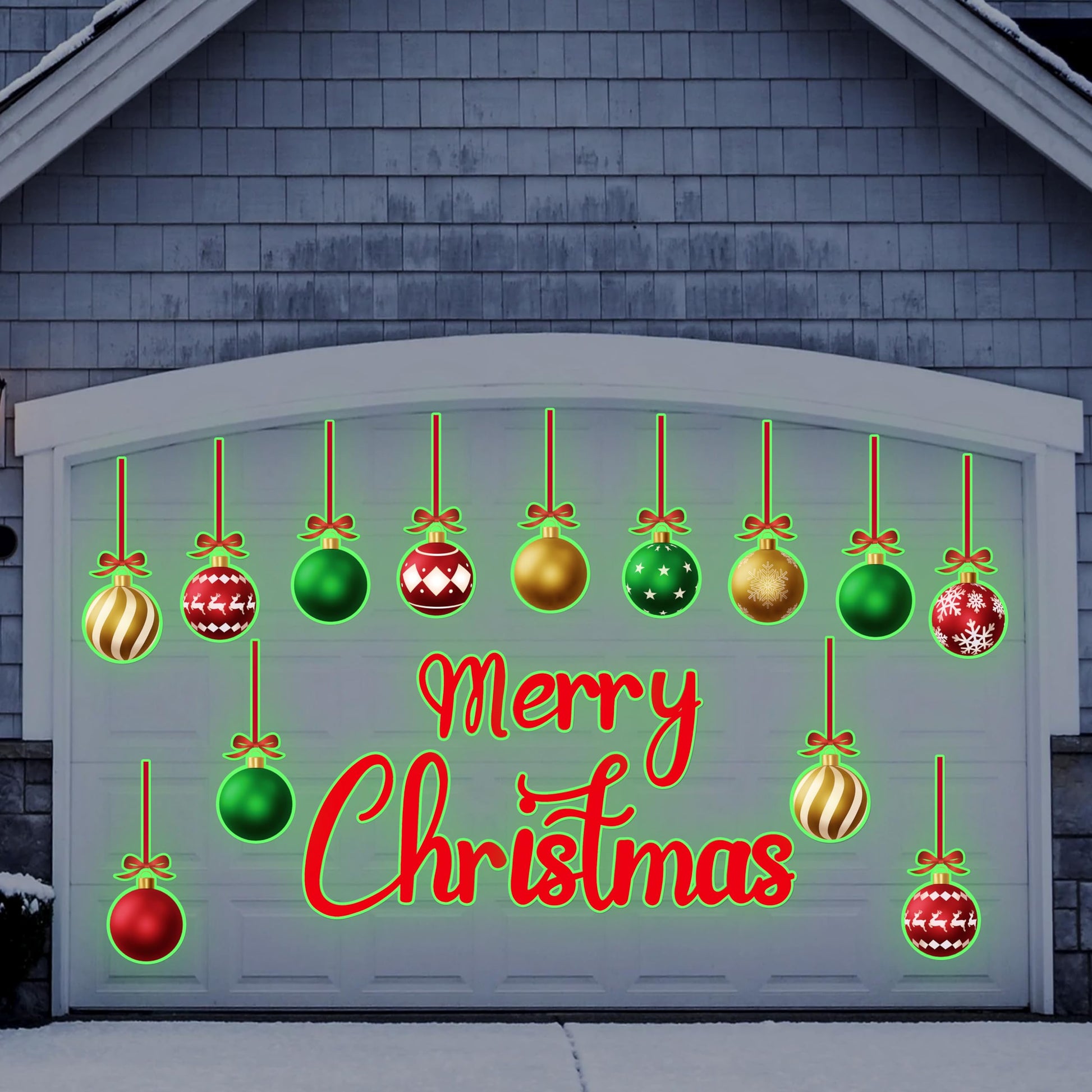- Glow-in-the-dark christmas garage door decorations: You will get 13 christmas ball magnets. 5 letter magnets including merry christmas. 13 bow rope magnets. Total is 31 magnets
