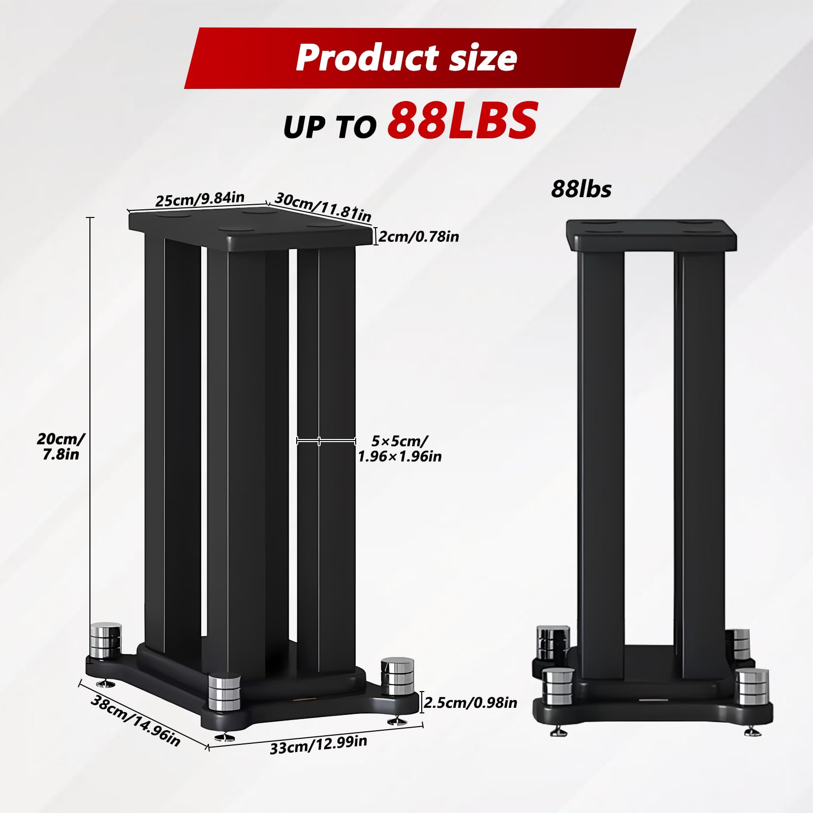 A Pair of Universal Speaker Stands, Heavy Duty Speaker Stands Holds Bookshelf Speaker Satellite Speaker Large Speaker, Vibration-Absorbing MDF Design, Holds 88lbs Speaker (Black, 20cm/7.8in)