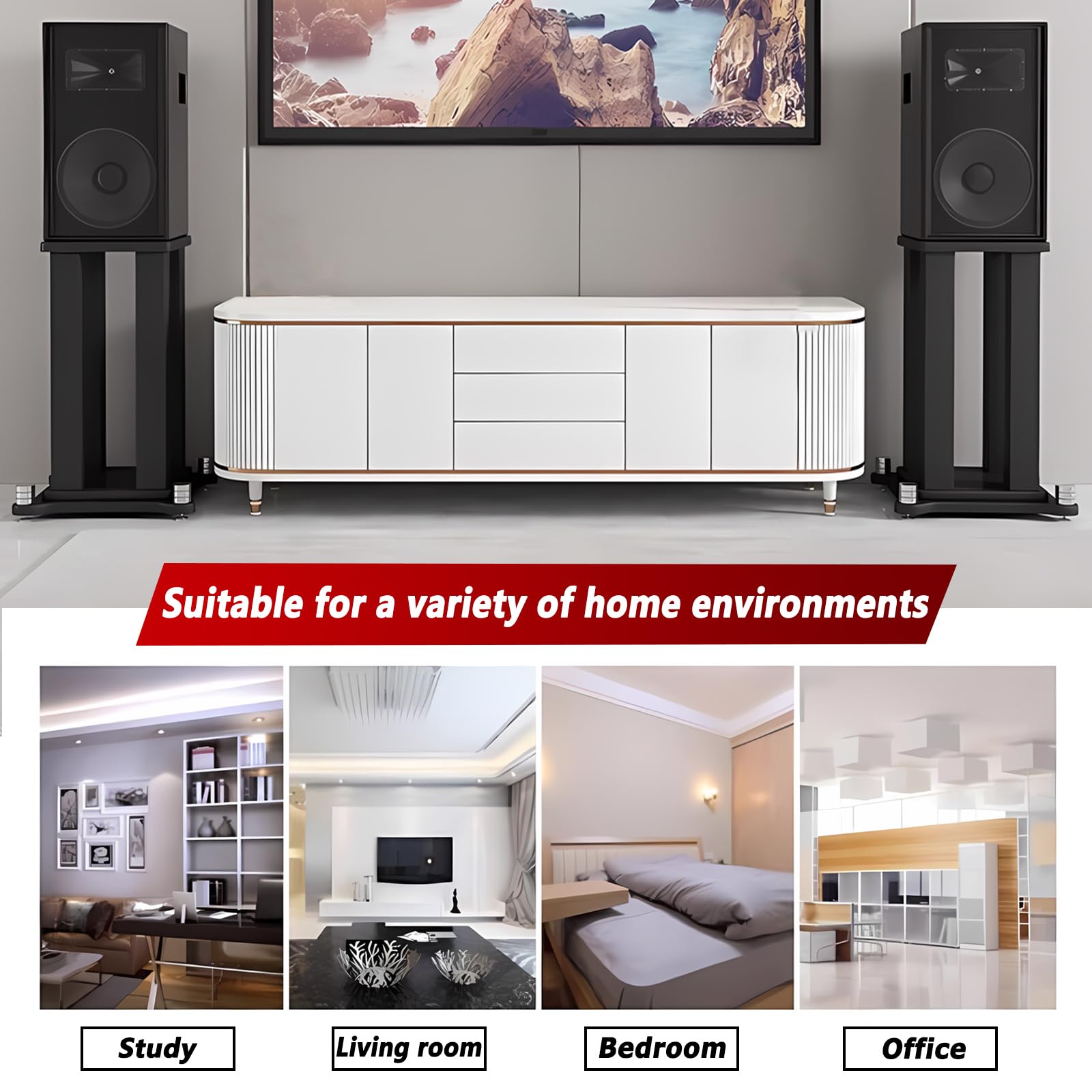 - DOUBLE-LAYER BASE DESIGN -- The bottom of the speaker stand adopts a widened and enlarged double-base arc design, and shock-absorbing rubber pads are added between the double-layer bases, making the double-layer base more stable and shock-absorbing