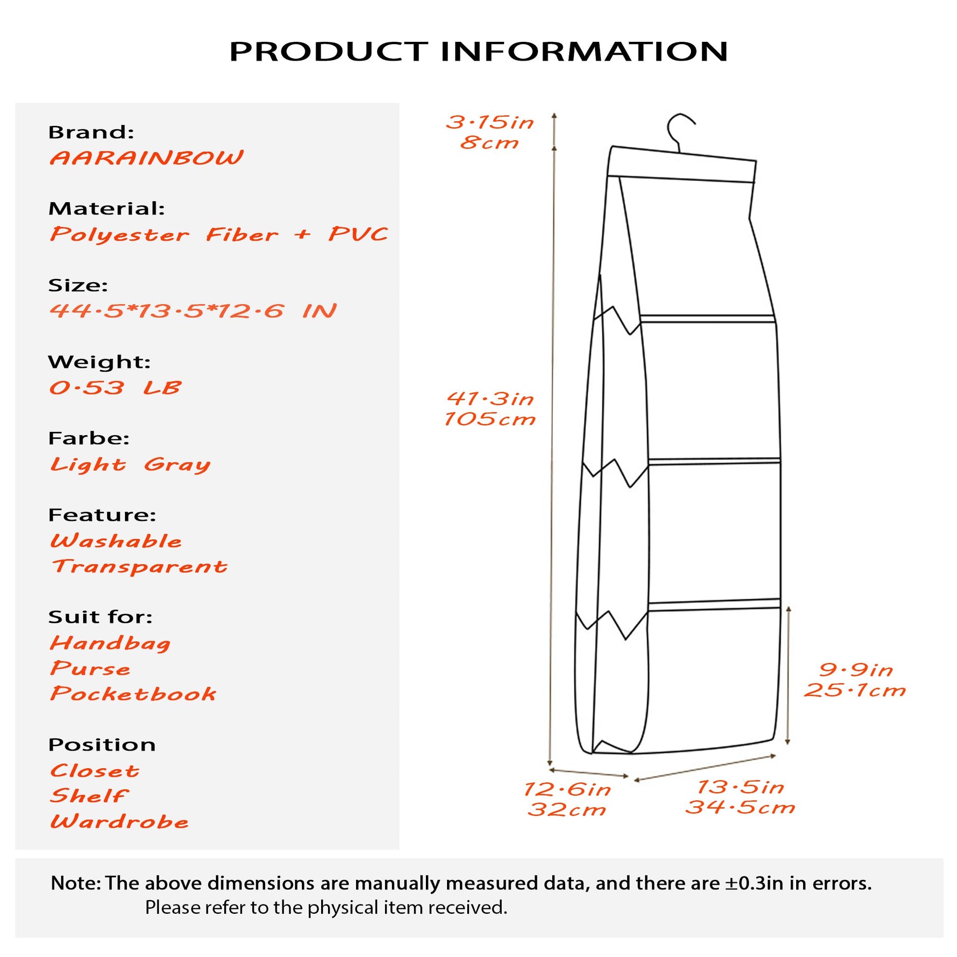 AARAINBOW 1 Pack Hanging Handbag Purse Organizer, Bags Organizor for Purse 8 Pockets Wardrobe Closet Space Saving Handbag Storage, 44.5L x 13.5W (B-Light Gray)