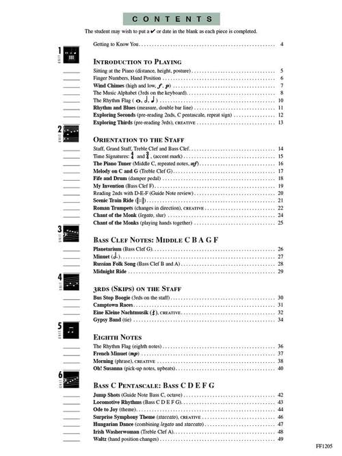 Details: A Focused Piano Method for Older Students and Teen Beginners*Accelerated Piano Adventures Lesson Book 1 by Nancy and Randall Faber is designed specifically for older beginners and teens. This method offers a faster-paced curriculum that bridges the gap between foundational piano skills and more mature repertoire. It's ideal for late beginners looking for structured progress with music that resonates.**Learn Grand Staff Notes, Chords, and Rhythm with Clarity*Students start by learning hand positions like C and G, then build on note reading, interval recognition, and basic rhythm values. Carefully sequenced lessons include chord playing and simple transpositions, providing a strong foundation for future musical development.**Engaging Songs That Foster Confidence and Technique*The book features a blend of original compositions, folk songs, and classical themes to reinforce theory and technique in a musically satisfying way. This combination makes practice both productive and motivating for teens and adult learners.**A Practical Music Teacher Resource or Gift for Pianists*Whether used in private instruction or for independent learning, this lesson book supports accelerated progress in a clear and encouraging format. A top choice for teachers working with older beginners or a thoughtful gift for pianists returning to the instrument later in life.**Songs Included:*Amazing Grace * Aloha Oe * Bagpipes * Bus Stop Boogie * Camptown Races * Chant of the Monk * Chinese Dragon * Chord Crossings * Dreamscape * Eine Kleine Nachtmusik * English Minuet * Fife and Drum * Forest Drums * French Minuet * Guide Note Pinball * Gypsy Band * Hungarian Dance * Halftime Show * Hard-Drivin' Blues * Harmony Sounds * I’ve Got Music * Irish Washerwoman * Journey by Camel * Jump Shots * Locomotive Rhythms * Minuet * Morning * Musette * Melody on C and G * Midnight Ride.