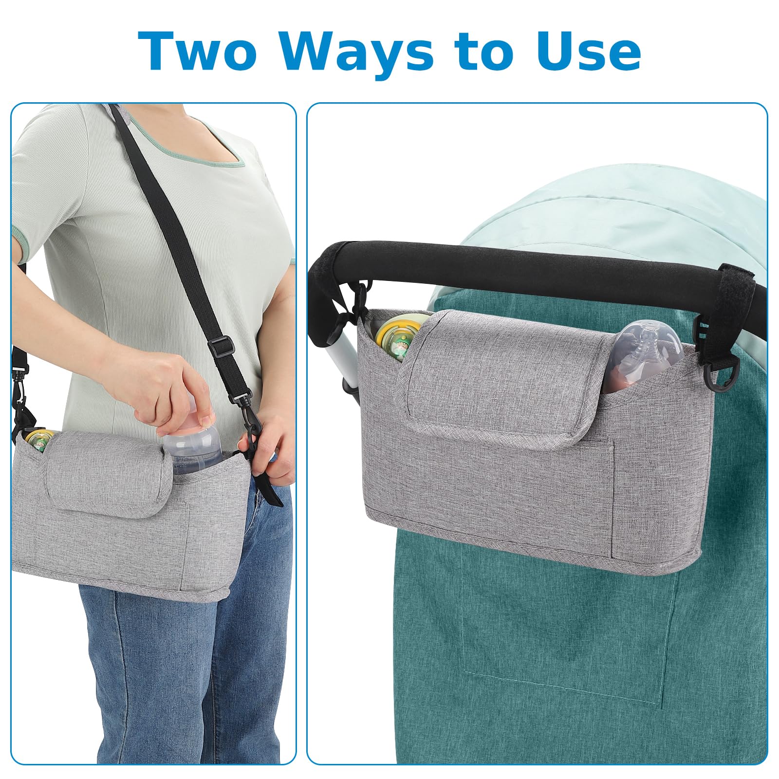 - Dual Purpose: This bag can be hung on the stroller as organizer for stroller or used as a shoulder bag for moms. The shoulder strap can be adjusted to different lengths at will. And the shoulder strap is equipped with shoulder protection to reduce the burden.