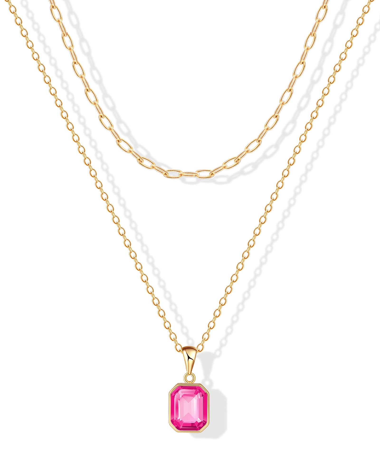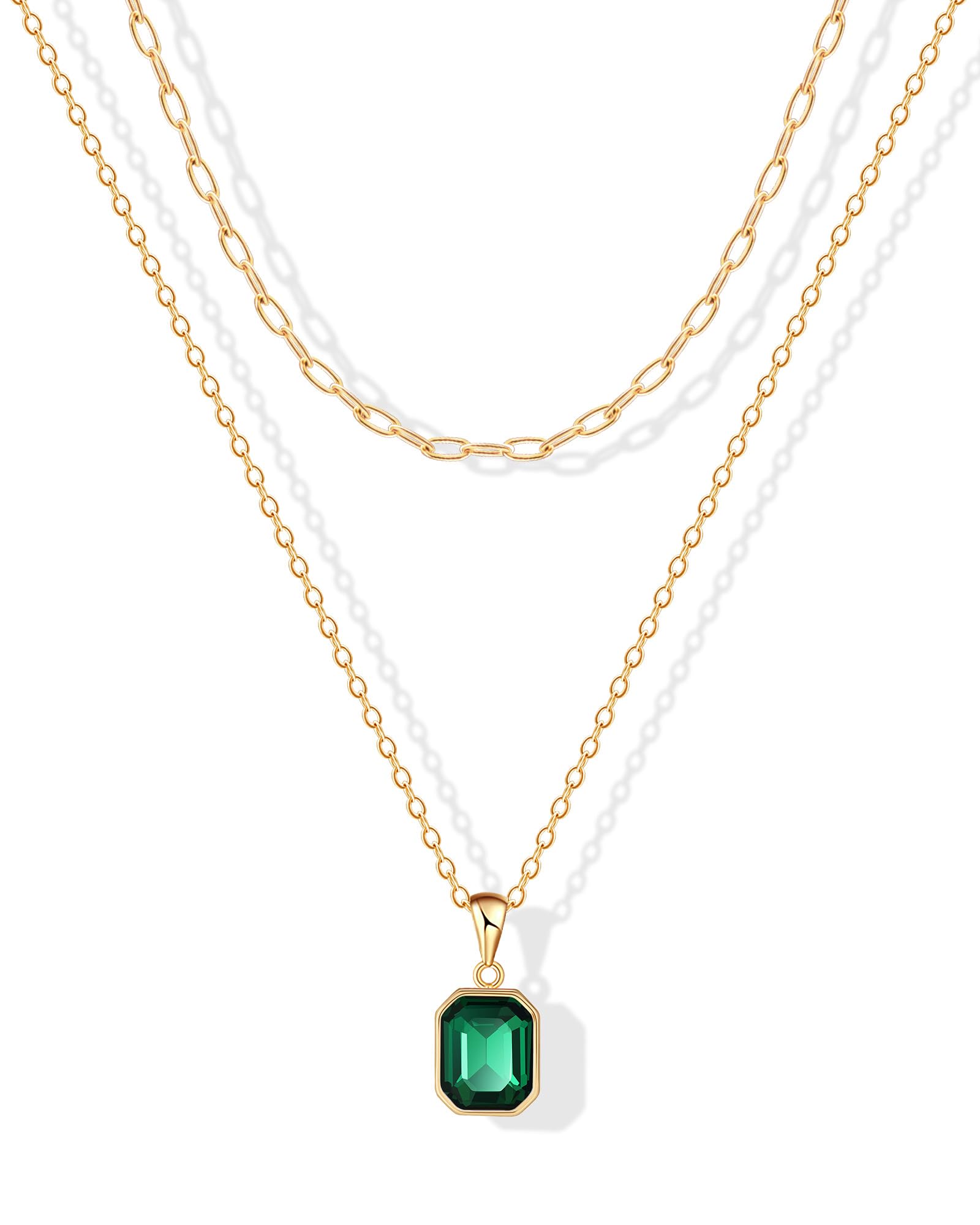 ACECHA Gold Layered Necklaces for Women, 18k Gold Plated Paperclip Chain Choker Necklace with Rectangle Crystal Birthstone Pendant Dainty Emerald Green Jewelry Gifts