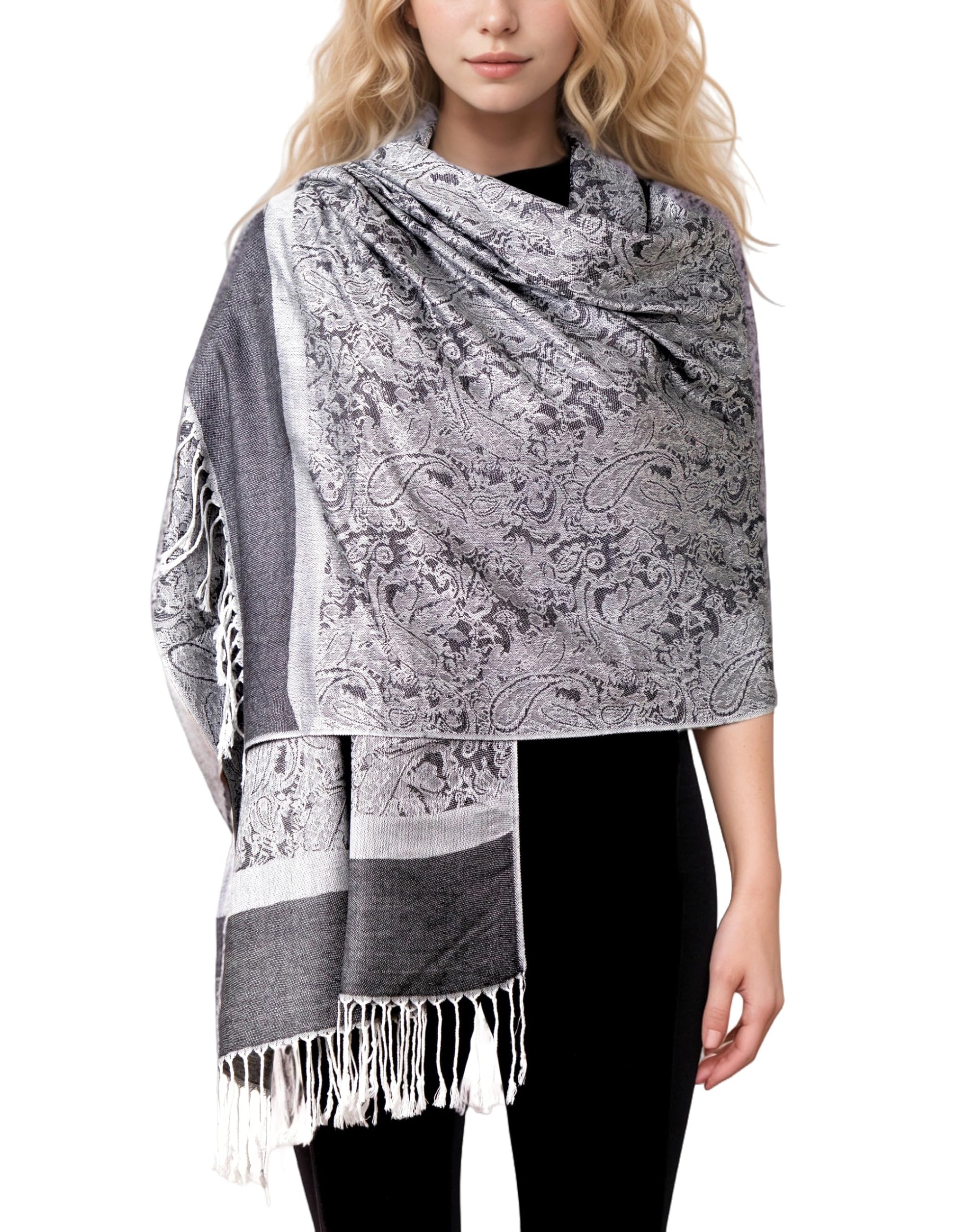 Achillea Two Tone Vintage Paisley Pashmina Scarf, Shawls and Wraps for Dresses, Lightweight Scarf for All Season
