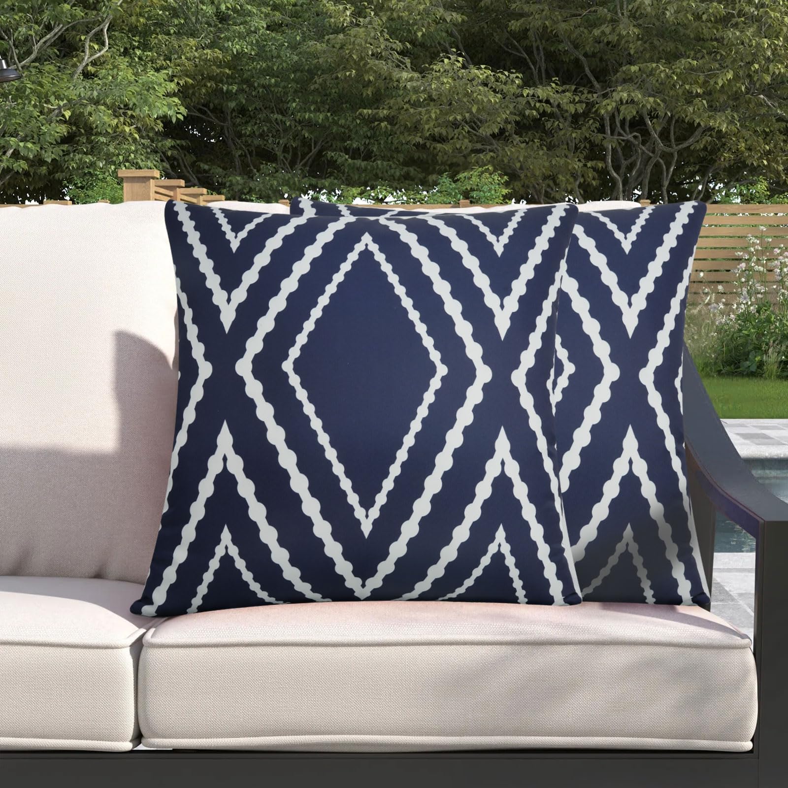 Adabana Outdoor Waterproof Throw Pillow Covers Set of 2 Boho Geometric Pillows Cover for Patio Garden 18 x 18 Inch Navy Blue