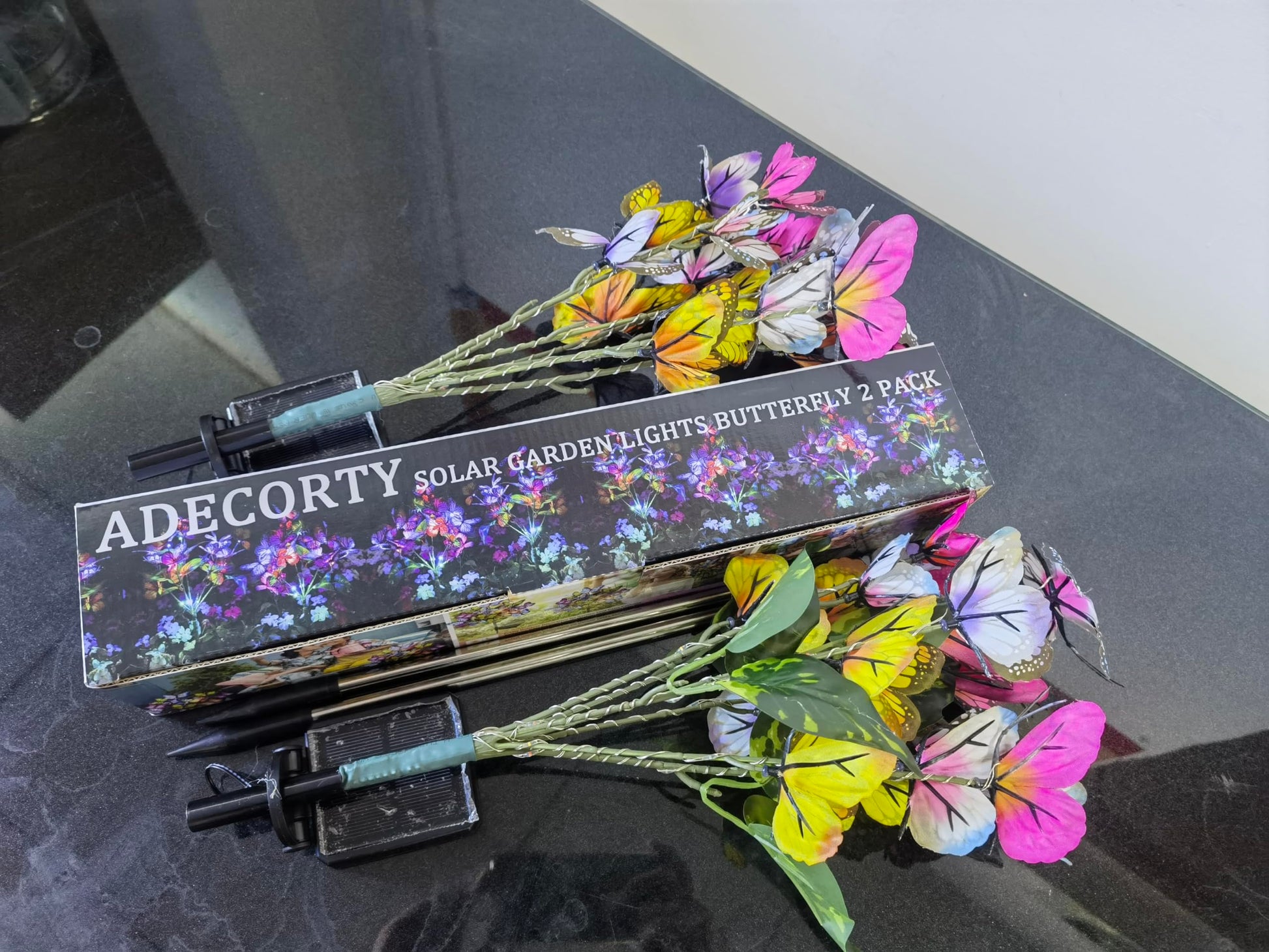 Adecorty Solar Garden Lights Outdoor Waterproof Decorative Solar Lights Outdoor 2 Pack with 44 LED 34 Butterfly Flower Garden Decor Yard Patio Lawn, Gifts for Mother's Day Mom Women