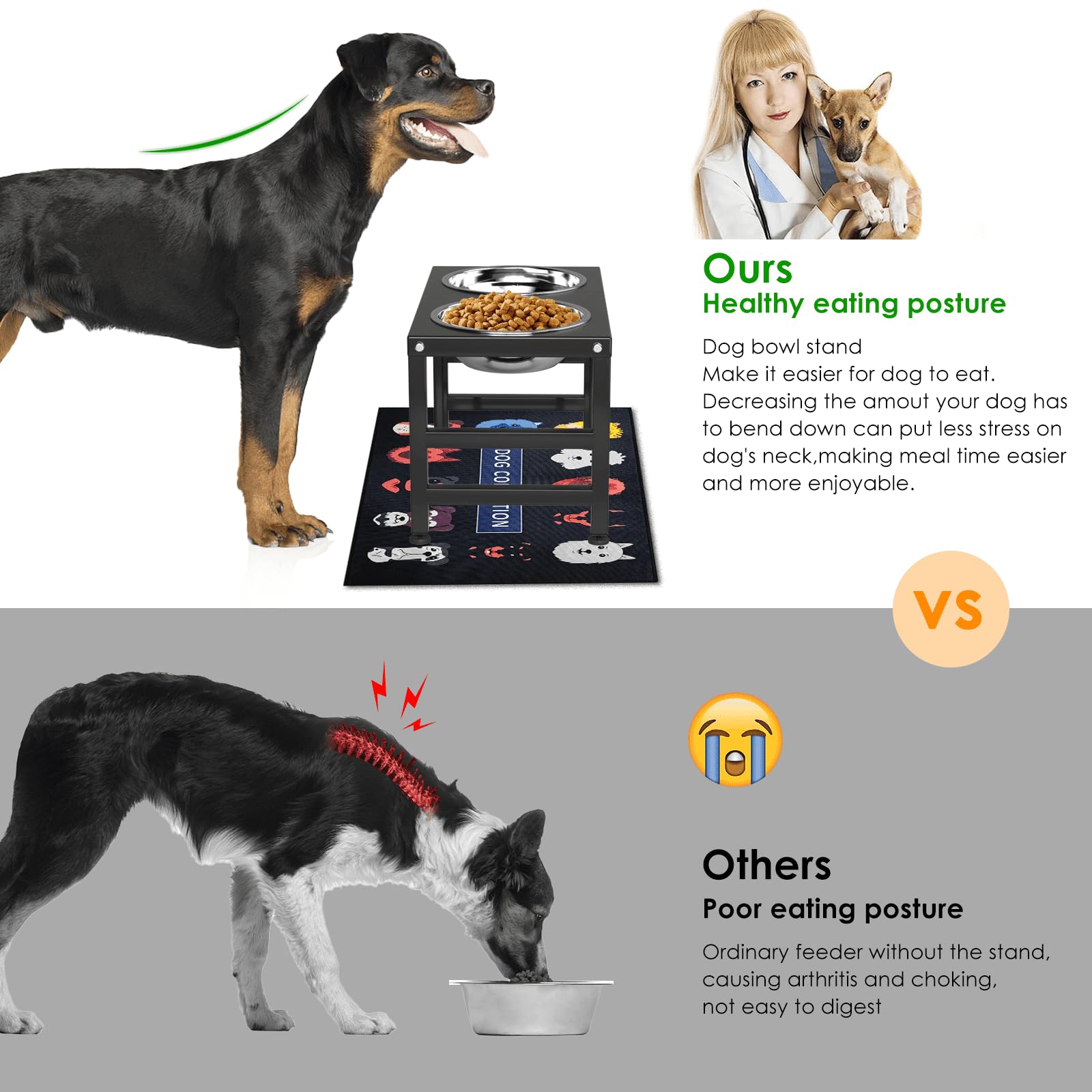 - 【KEEP YOUR FLOOR CLEAN】- The ADENGL raised dog bowl comes with a splash-proof mat that can be placed underneath the bowl rack, spilled food and water can be well collected by the mat to keep the feeding area dry and tidy. Perfect for messy eaters