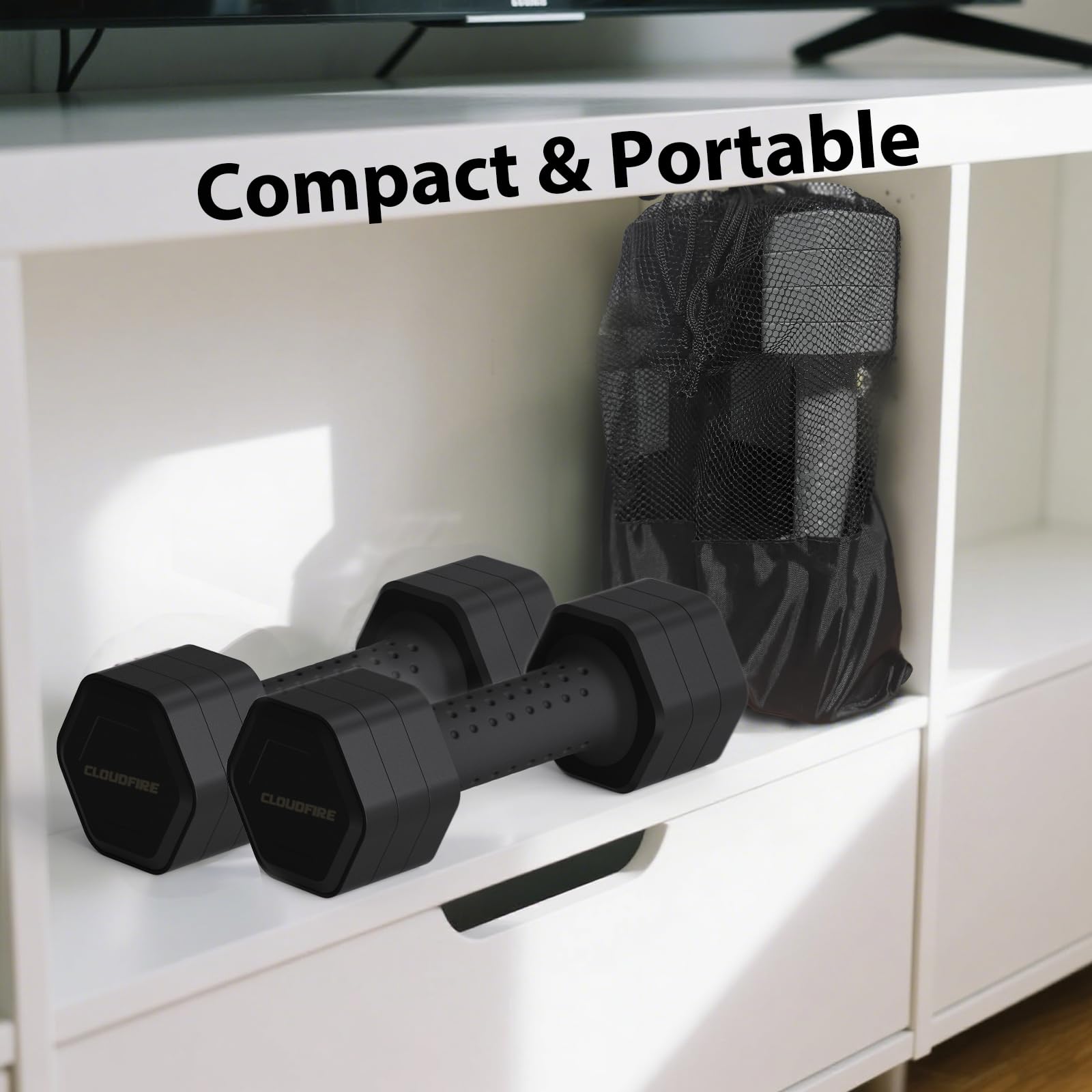 - Compact and Portable: The Cloudfire Women's Dumbbell Set occupy just 0.2FT² and can be easily put into a gym bag or the included storage bag to meet your home fitness, daily office exercise or gym training needs.
