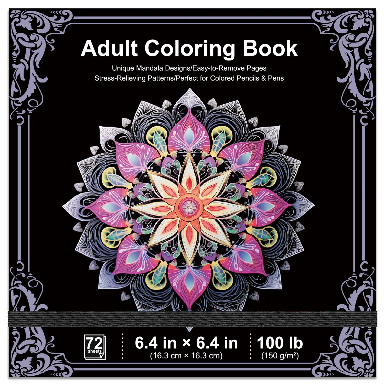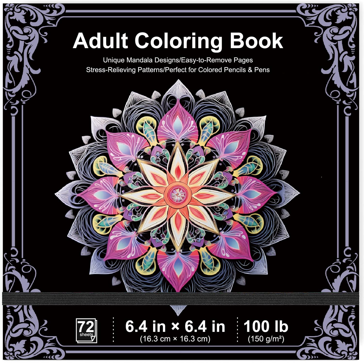 Adult Coloring Book, 72 Sheets Coloring Books for Adults Relaxation, 6.4 x 6.4 Inch, 110lb/150gsm Mandala Designs with Detachable Pages, Art Essentials for Calmness, Self-Reflection.