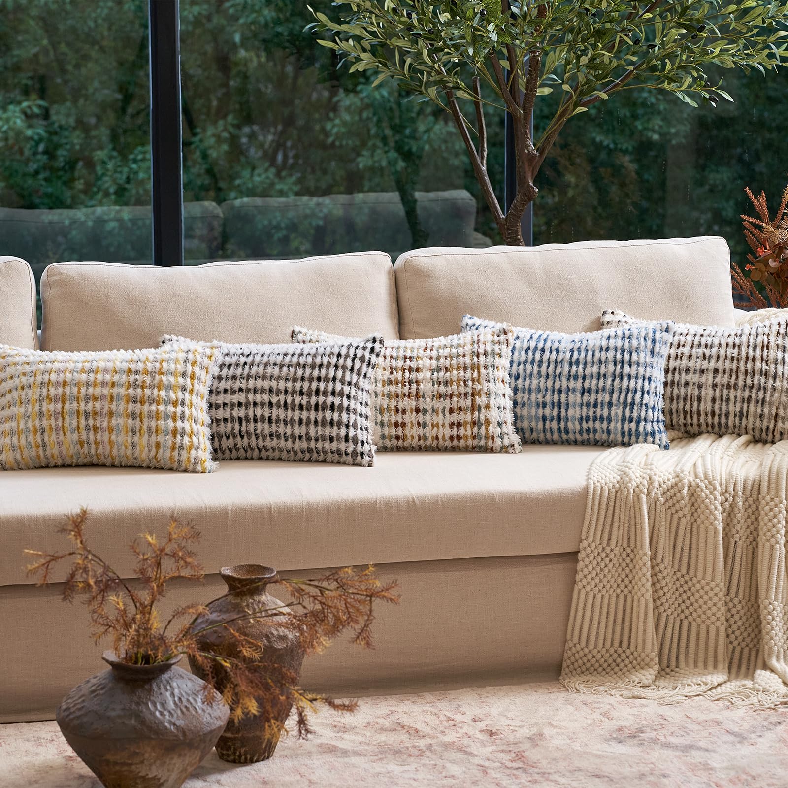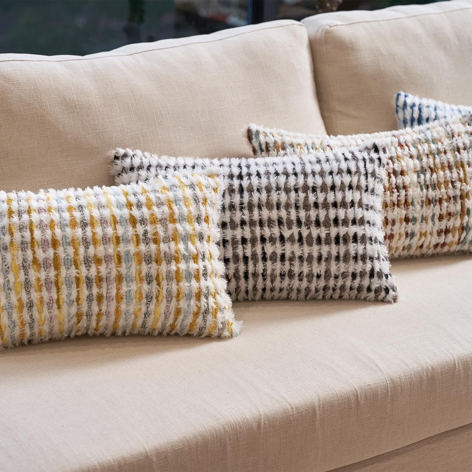 Aeckself Boho Chenille Tufted Pillow Cover 12x20 Inch, Rectangle Decorative Lumbar Throw Pillow Cover Neutral Pillowcase for Couch Bedroom Living Room, Black Gray