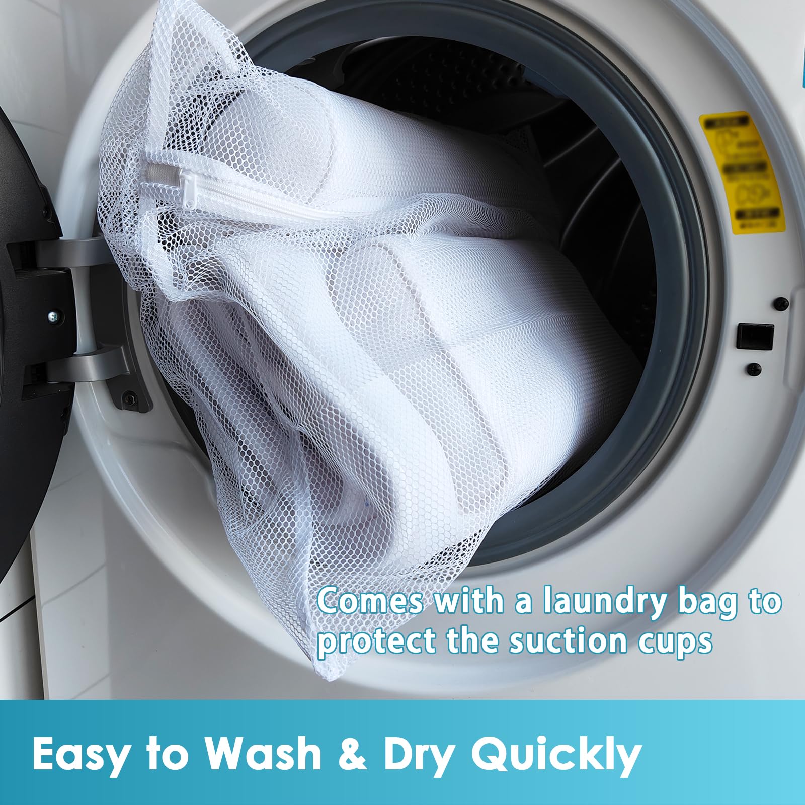 - Washable & Hang Up with Big Drying Hook This Full Body bath pillow attached a big drying hook on the back. After your soaking bath time, you can hang it up with the hook. We also choose unique pearl white color air mesh fabrics for our full body tub cushion, which is high grade material. The full body bathtub cushion is machine washable and comes with a laundry bag