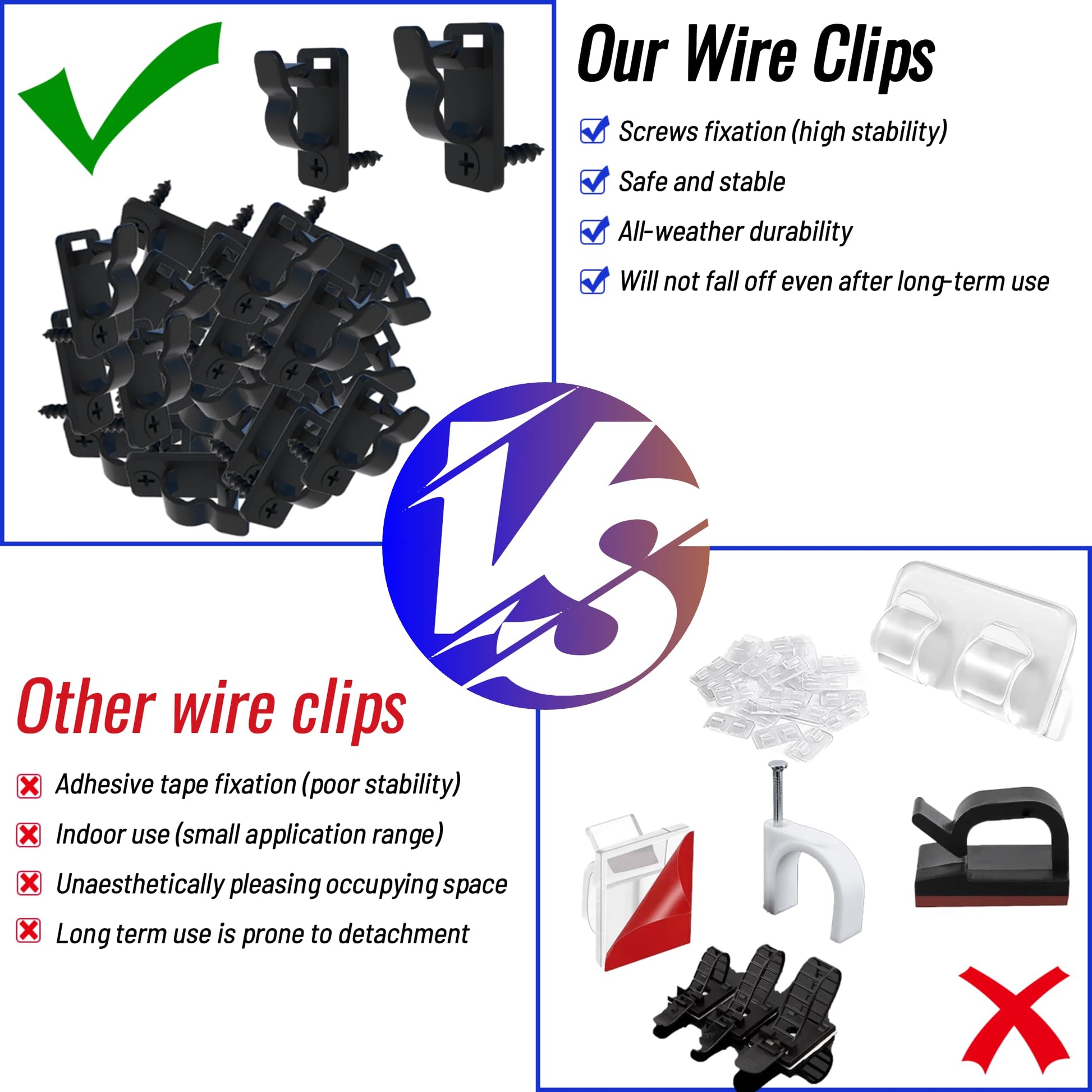 - 🛡 Unbeatable Stability: Secure your festive lights with our 80-pack outdoor light clips. Featuring durable screw mounts, these clips are perfect for string lights, Christmas lights, and more, ensuring your lights stay firmly in place, even in high winds.