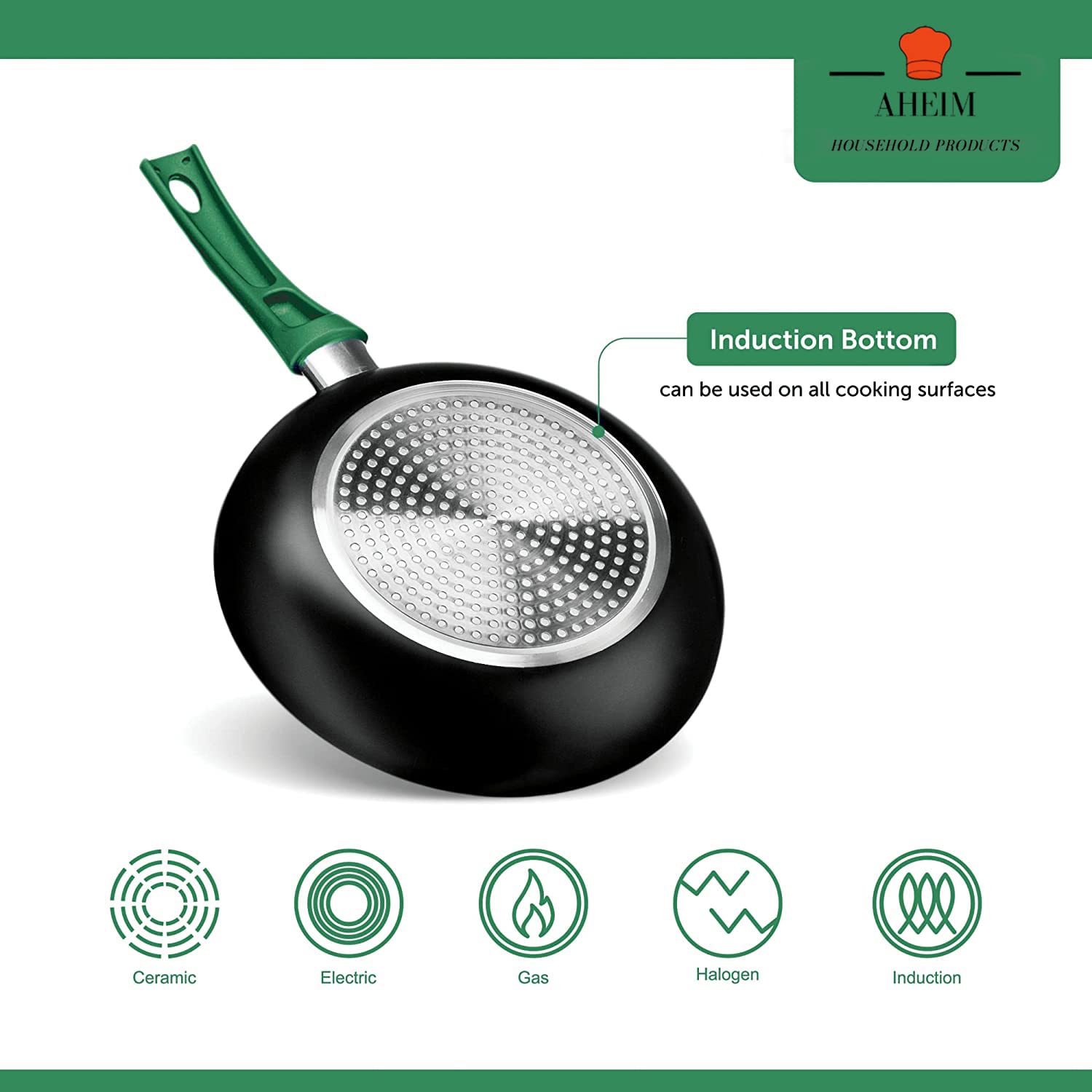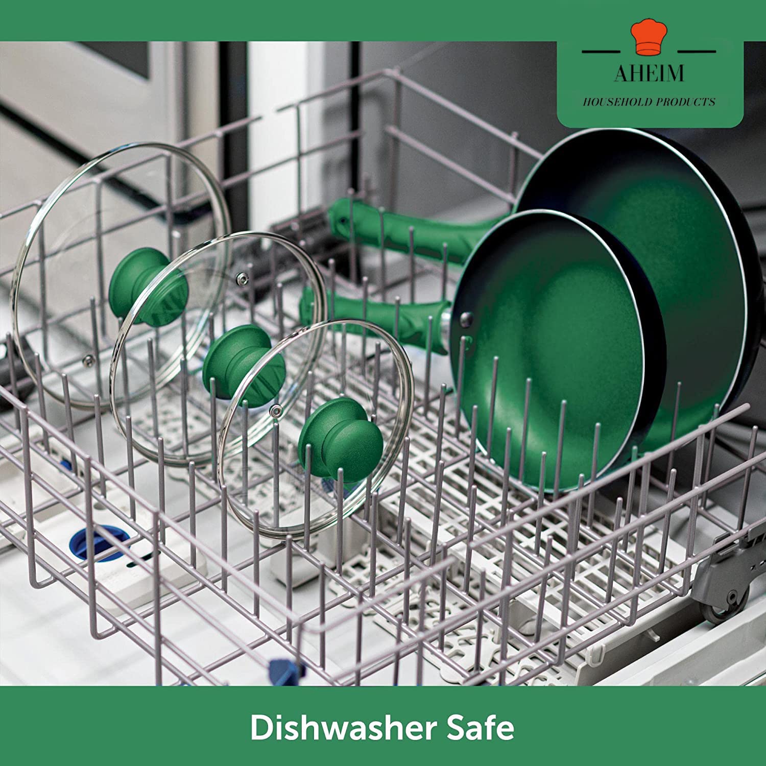 AHEIM Pots and Pans Set, Aluminum Nonstick Cookware Set, Fry Pans, Casserole with Lid, Sauce Pan, and Utensils, 11 Piece Cooking Set (Green)