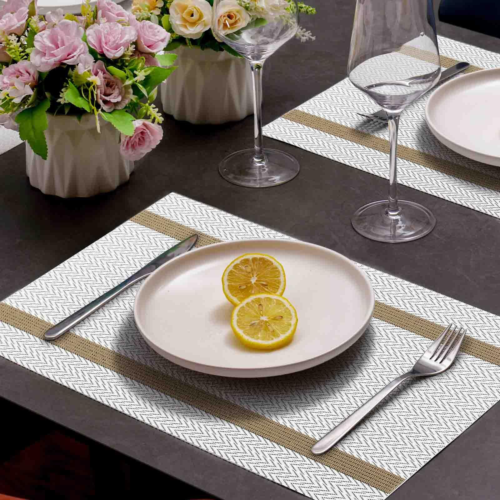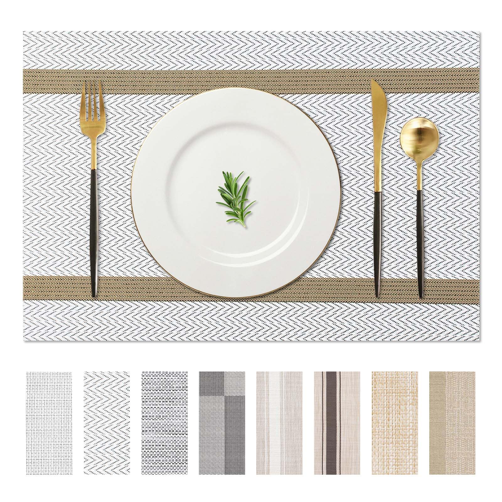 AHHFSMEI Placemats for Dining Table Set of 8 Woven Vinyl Plastic Place Mats Non-Slip Heat Insulation Stain Resistant Table Mats Washable Easy Clean Placemats (White Wave Stripe 8)