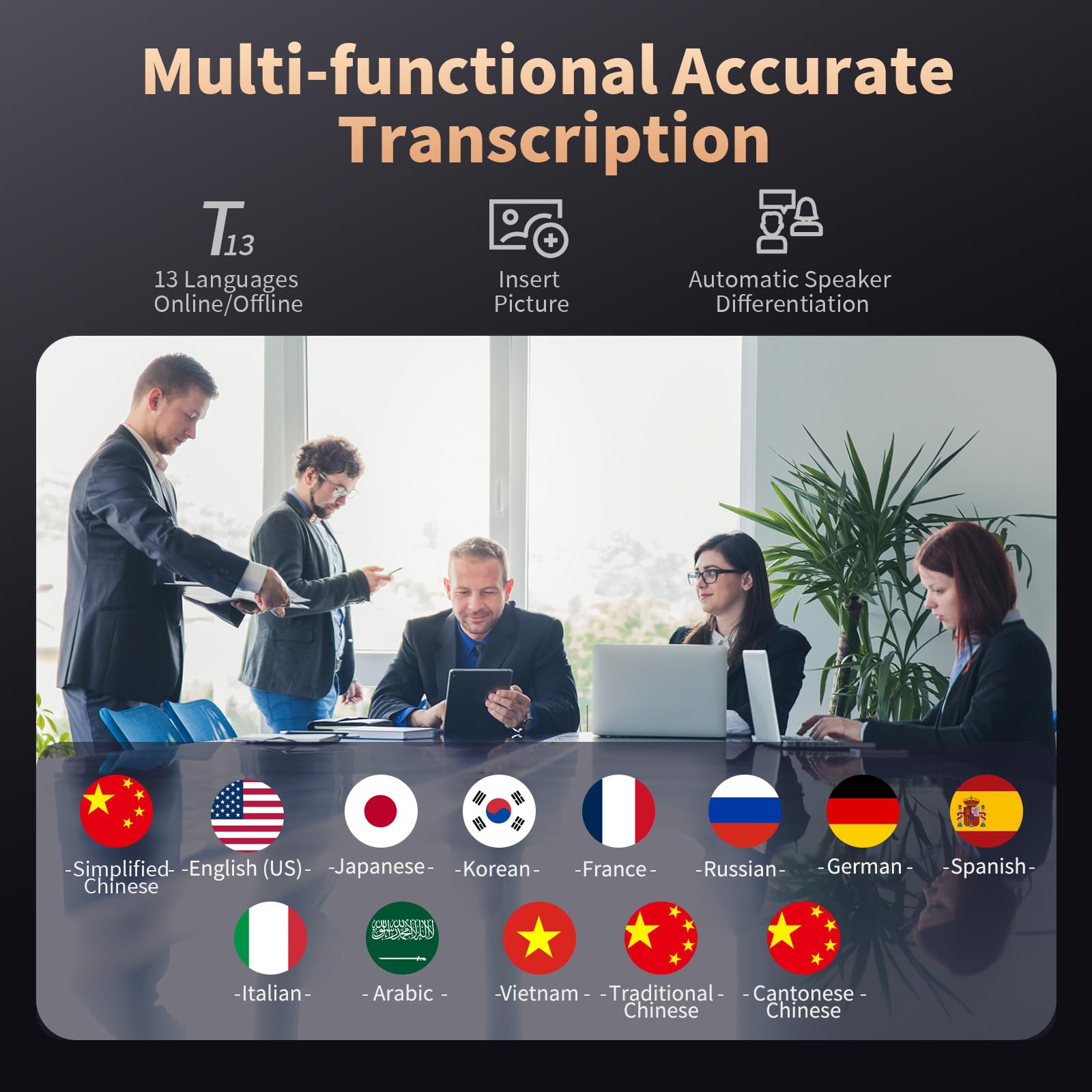 - 【Professional HD Recording】This audio recorder with transcription to text features a dual silicon microphone array with intelligent noise-canceling technology, enabling 6-8 meters long-range high-definition audio capture. AI voice recorder transcriber supports online transcription mode to automatically distinguish speaker roles with up to 95% transcription accuracy, while also allowing users to take and insert pictures during recording to create multimedia notes