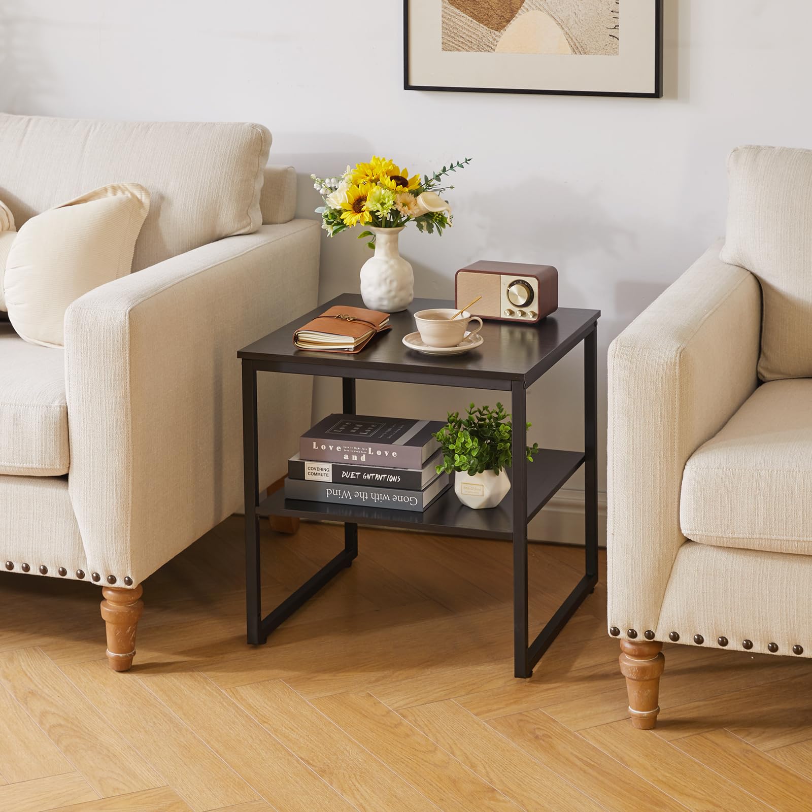 - User-friendly: This side table is easy to assemble and fits in small space, and is easy to disassemble as well when you don't need it temporarily; Two-tier end table with additional lower shelf for more storage space; To clean it just with one wet duster cloth