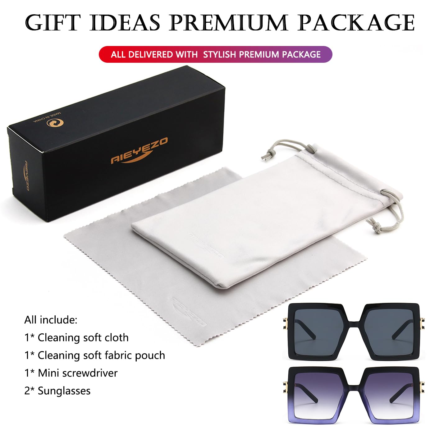 - HIGH-END GIFT IDEAS FOR FRIENDS AND FAMILY ►These high quality oversized square sunglasses are carefully inspected and carefully packaged, so It is also a gift packaged ready, making it a wonderful yet practical gift idea for friends and family!