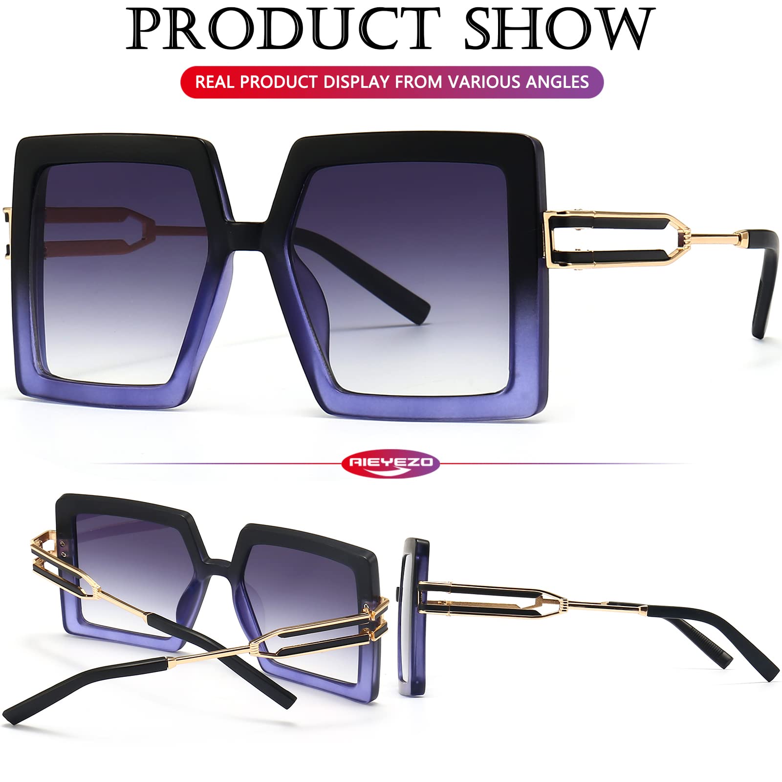 AIEYEZO Oversized Sunglasses for Women Square Fashion Big Large Frame Sun Glasses UV400 Protection (Black + Blue Gradient)