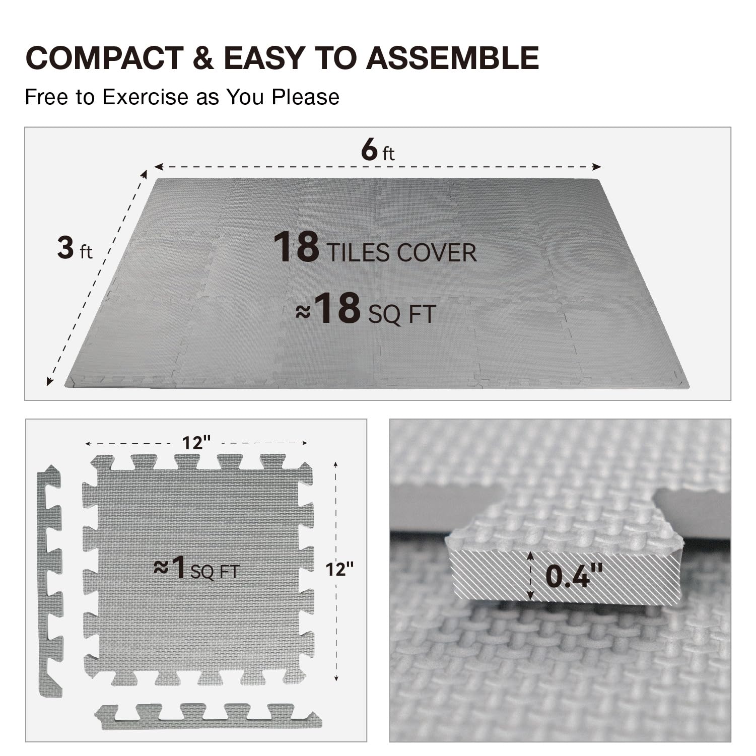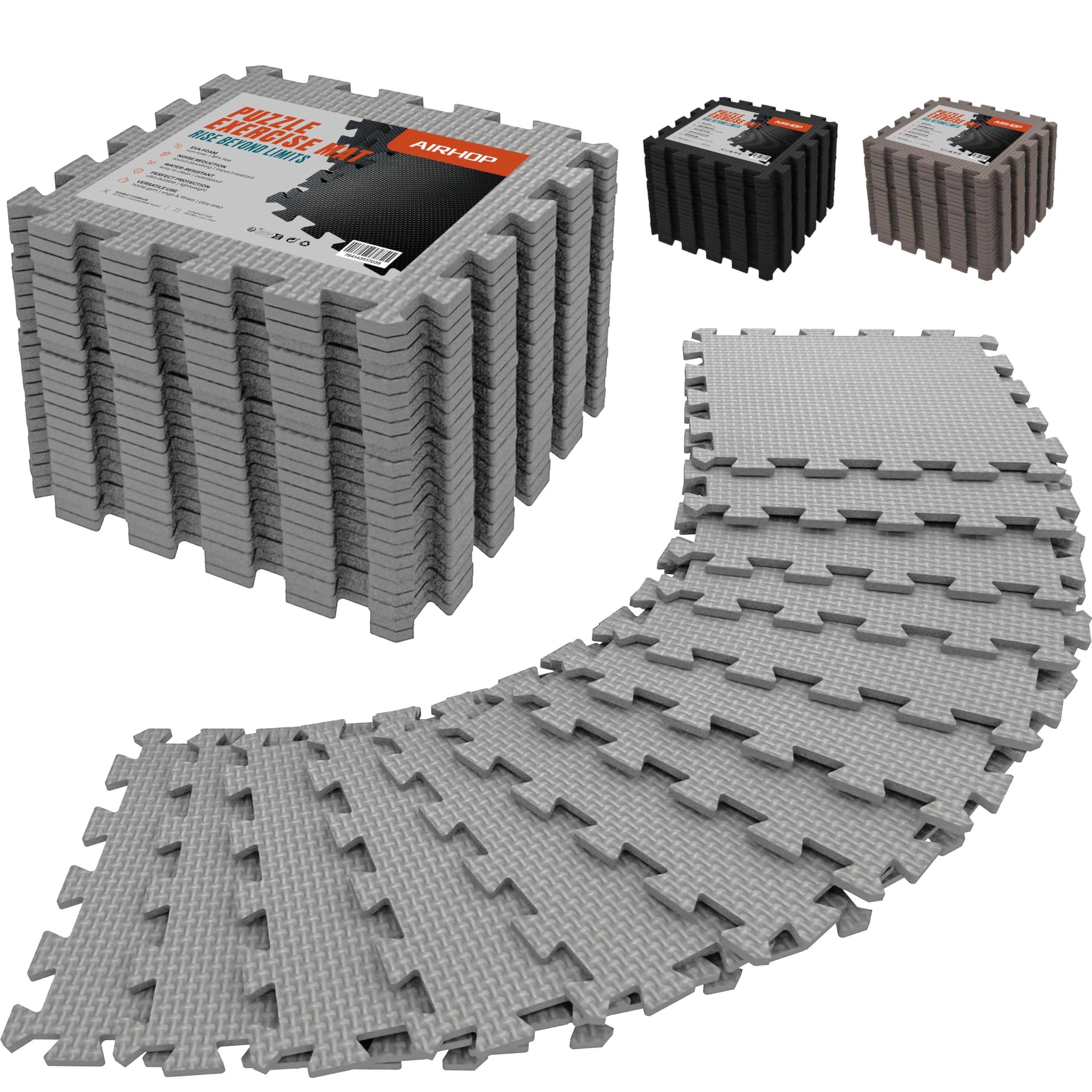 AIRHOP 18 Tiles Gym Floor Mat, EVA Foam Puzzle Gym Mat, High-Density Interlocking Foam Floor Tiles for Home Gym, Play Workout Garage Kitchen Flooring