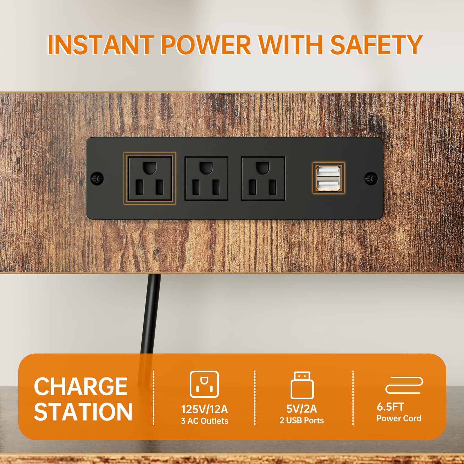 - 【Kitchen Rack & Coffee Bar Hub】 Equipped with a recessed UL-certified power strip (3 outlets + 2 USB ports), this bakers rack with power outlet safely powers your microwave, coffee maker, and kitchen gadgets while maintaining a sleek profile. Perfect for coffee bar setups and microwave stand needs.