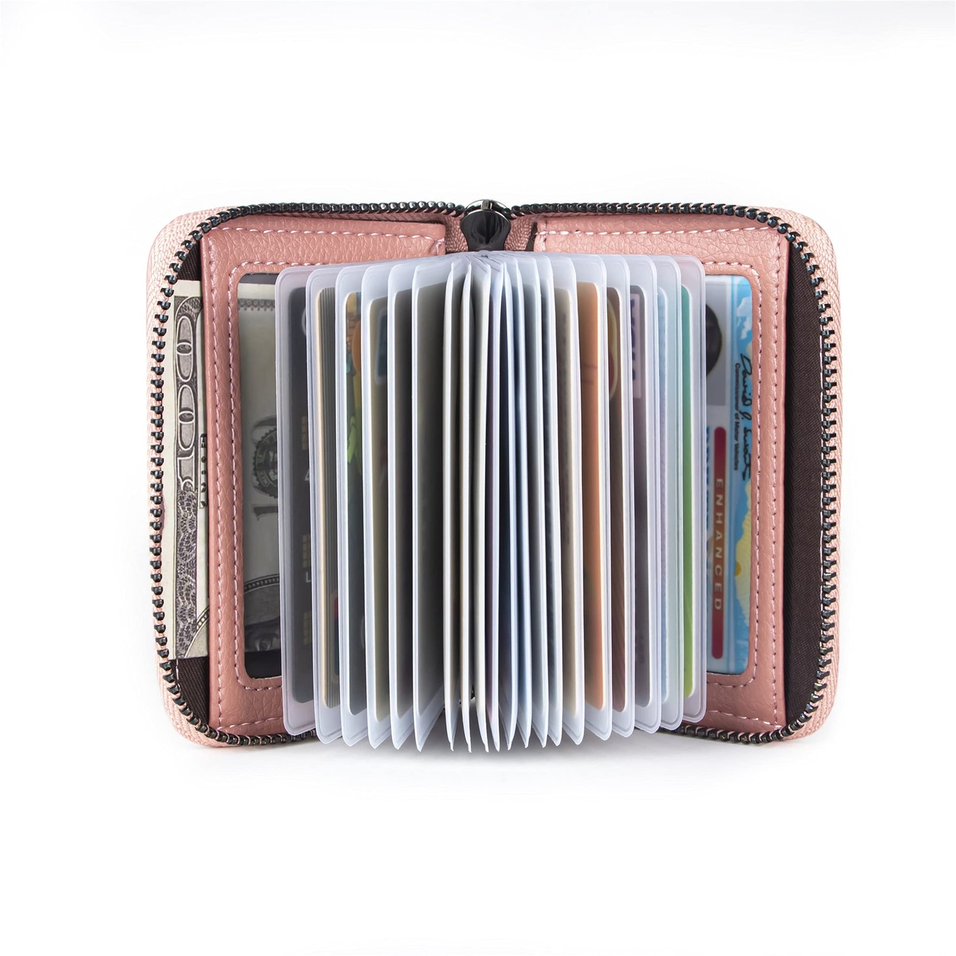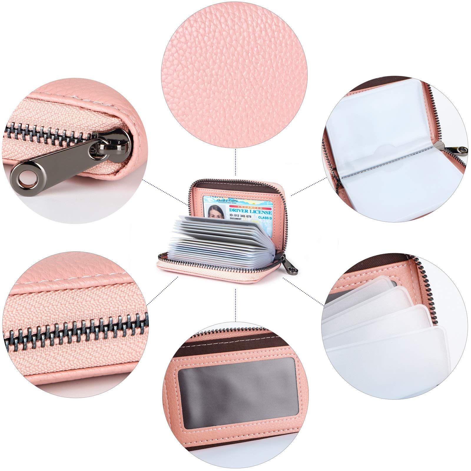 - Upgrade Designs: It's different from other designs, We pay more attention to consumers' experience and feelings. Our credit cards holder is made of high quality thickened PVC card slots, which is not easy to tear and is more durable. And using Crescent groove design and Frosted design, the card slots will not stick to the cards, It's easy to load and take out the cards. We adopte a more durable and smoother zipper and so on. We pay more attention to consumers' experience and feelings.
