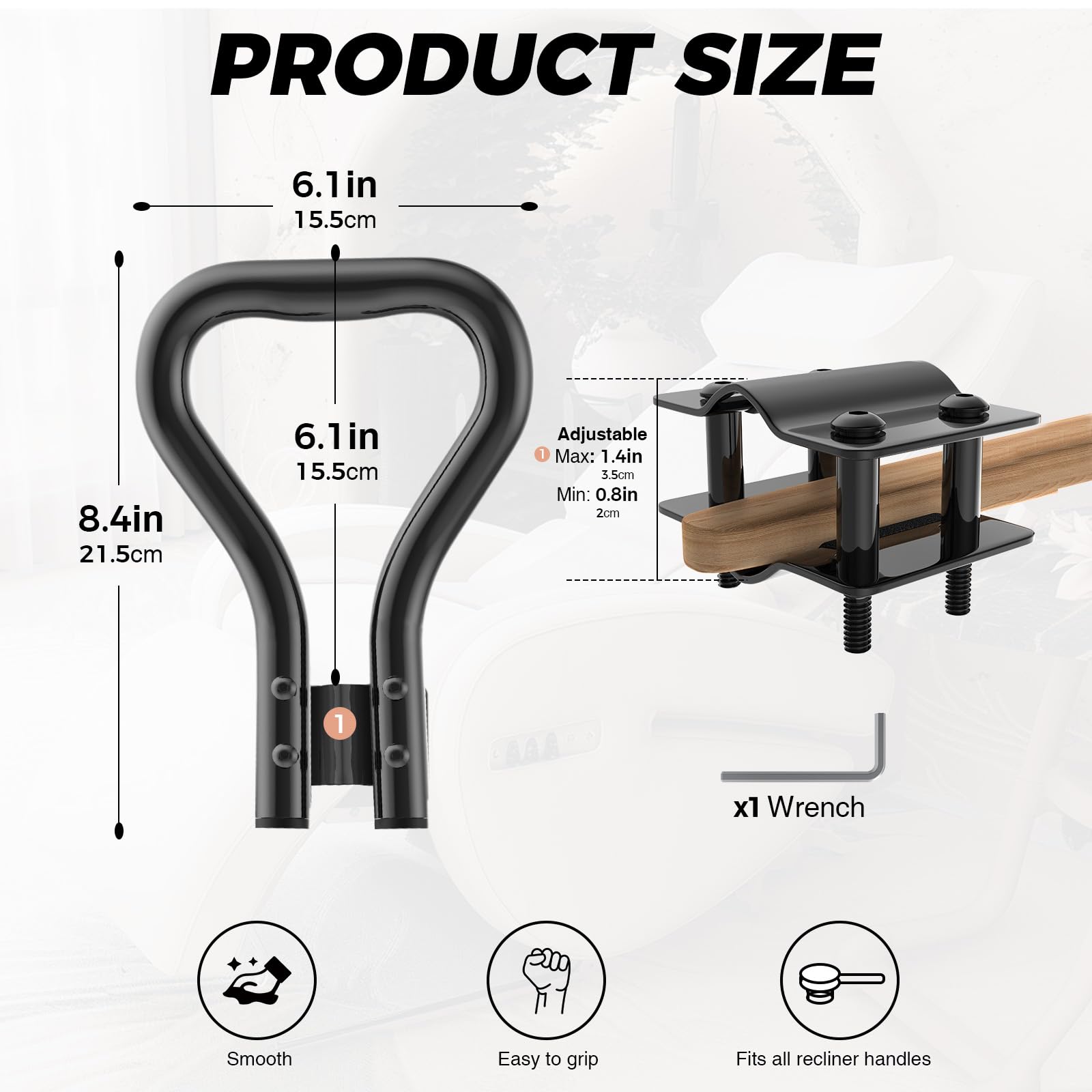 - [ERGONOMIC DESIGN] Our recliner handle extender are ergonomically designed to fit the curves of the hand, increasing the length and width of the recliner handle to provide a more comfortable grip and more convenient operating space.