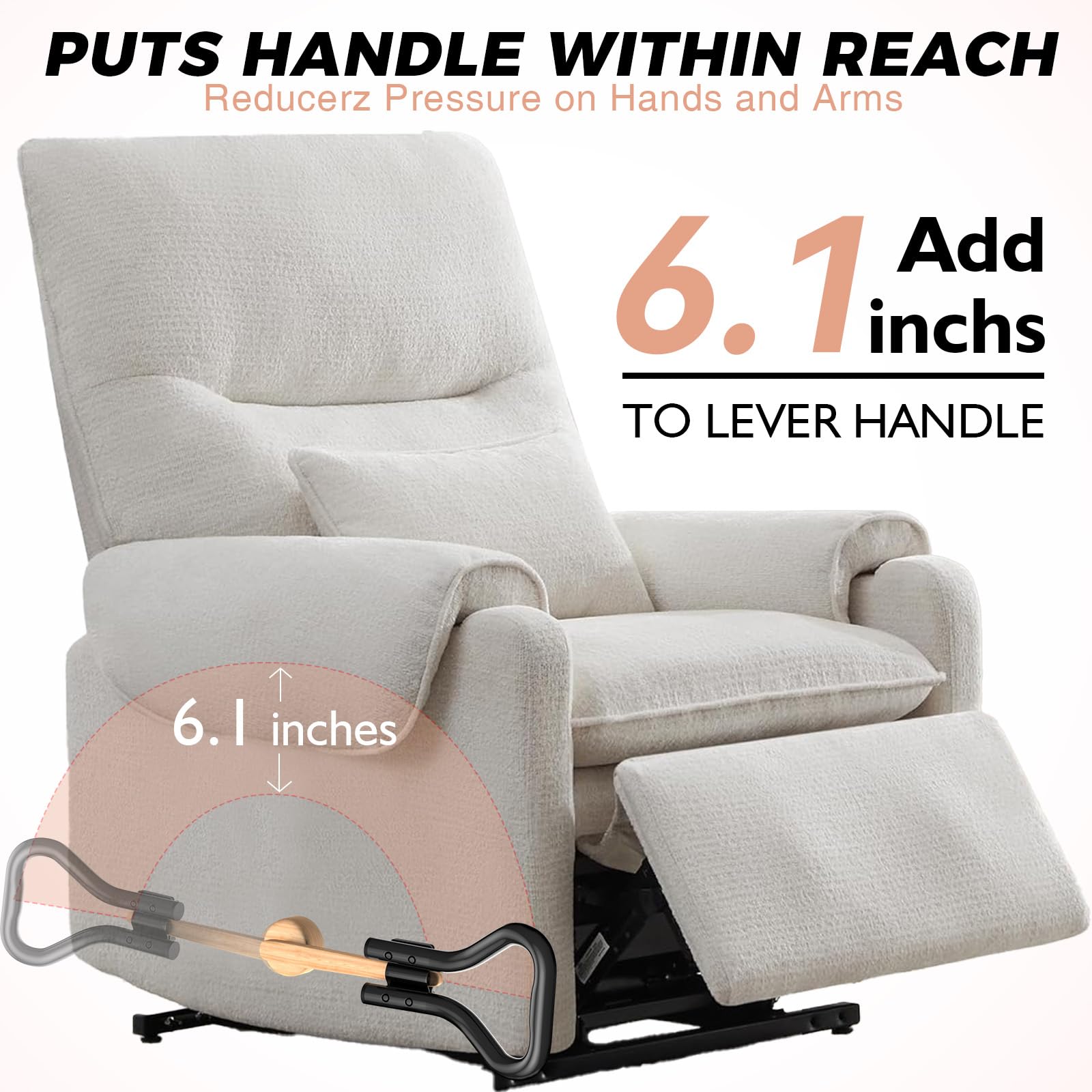 - [LITTLE STRENGTH, BIG OPERATION] The oversized recliner lever extender riser utilizes the principle of leverage, and by increasing the length of the handle, Reduces the force required to operate the handle with the arm, and operate lazyboy chair handle Easier, lift the footrest easier.