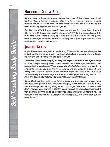 Details: Continuing the incredible popularity of Alfred's Basic Adult Piano Course, this new book adapts the same friendly and informative style for adults who wish to teach themselves. With the study guide pages that have been added to introduce the music, it's almost like having a piano teacher beside you as you learn the skills needed to perform popular and familiar music. There are also five bonus pieces: At Last * Have Yourself a Merry Little Christmas * Laura * Over the Rainbow * Singin' in the Rain. Included is a recording containing the piano part and an engaging arrangement for each of the 65 musical examples. 192 pages.