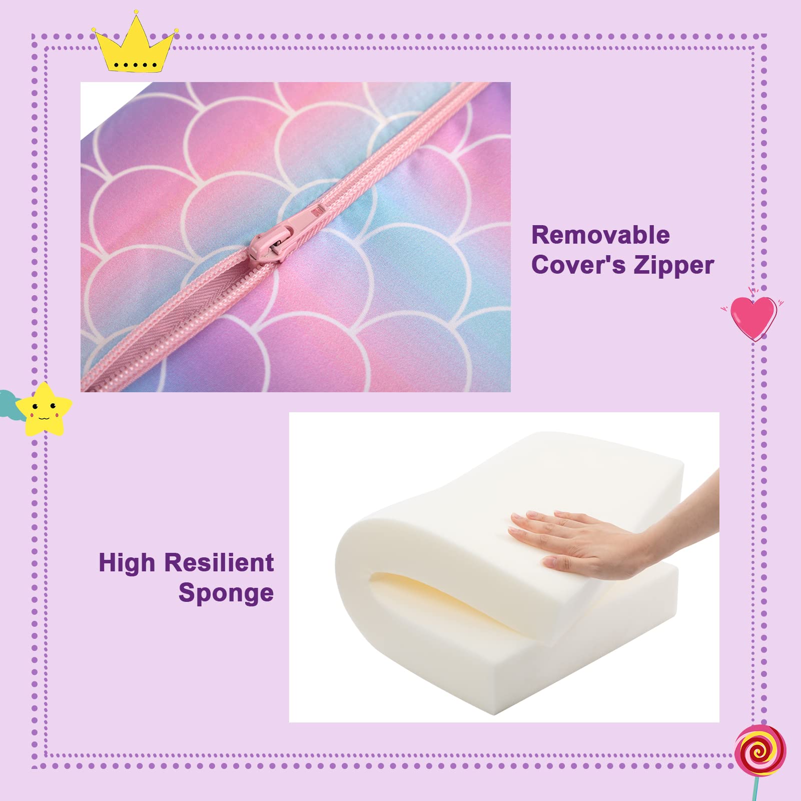 ALIMORDEN 2-in-1 Flip Out Comfy Toddler Couch, Lovely Kids Chair Convertible Sofa to Lounger for Story/Nap Time, Mermaid Scale