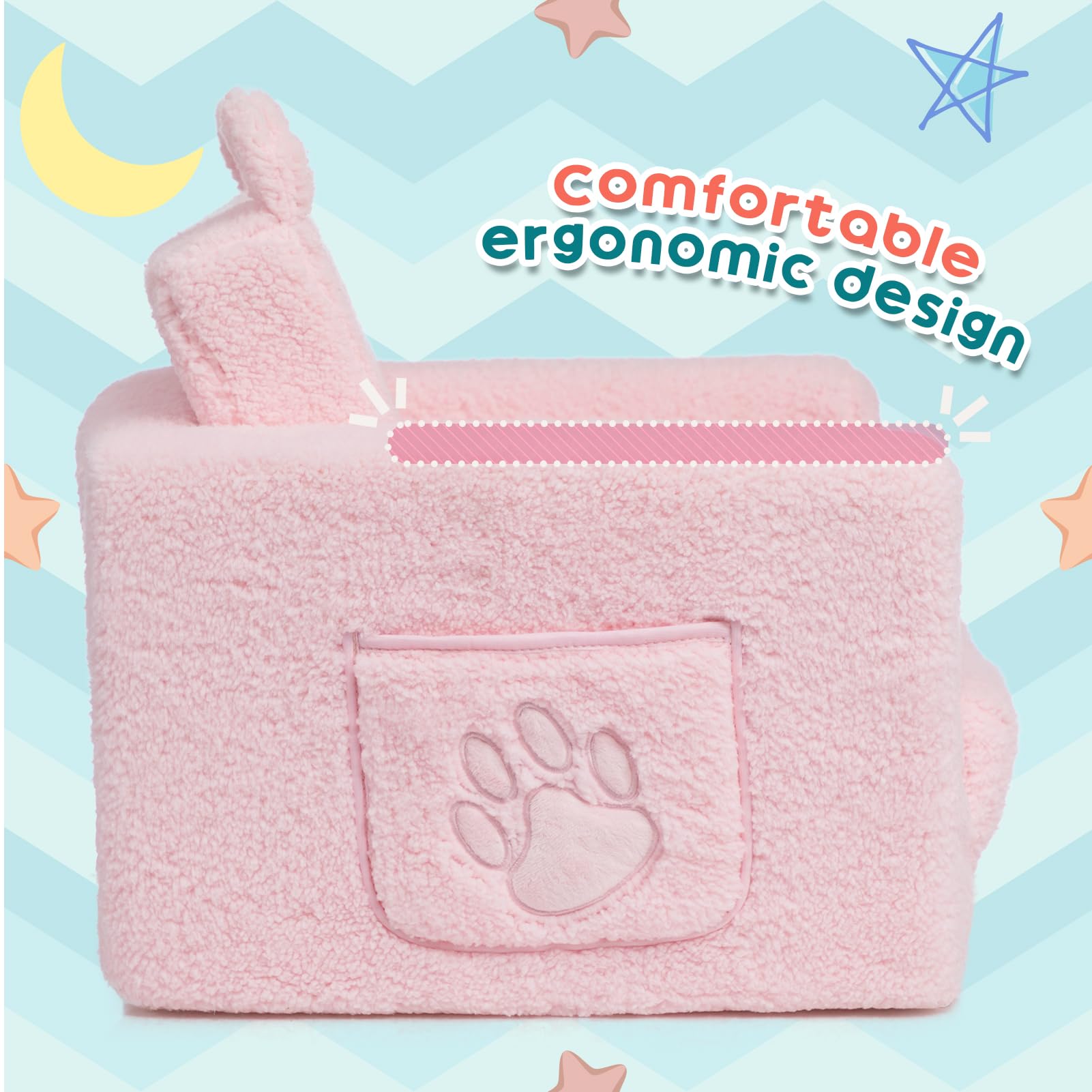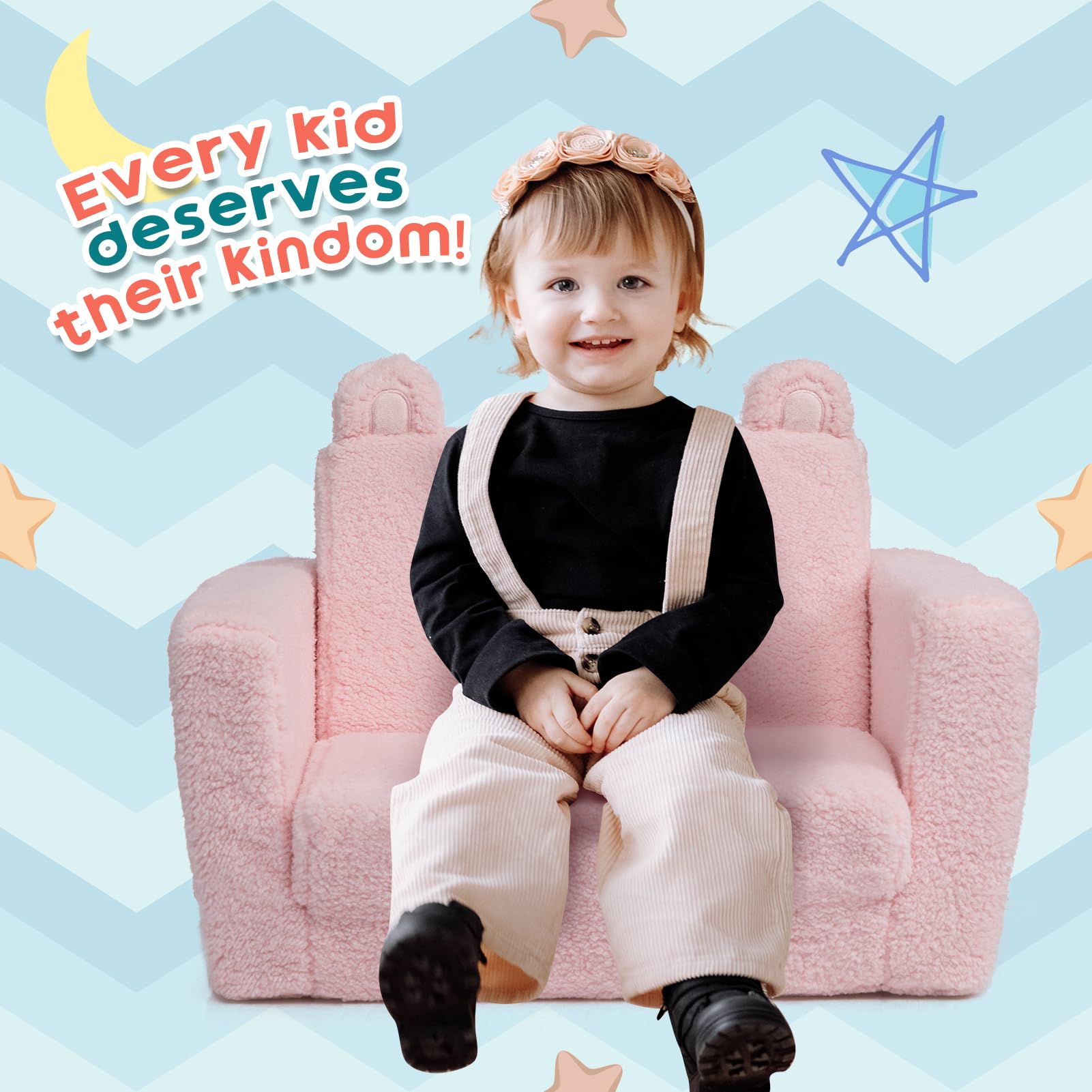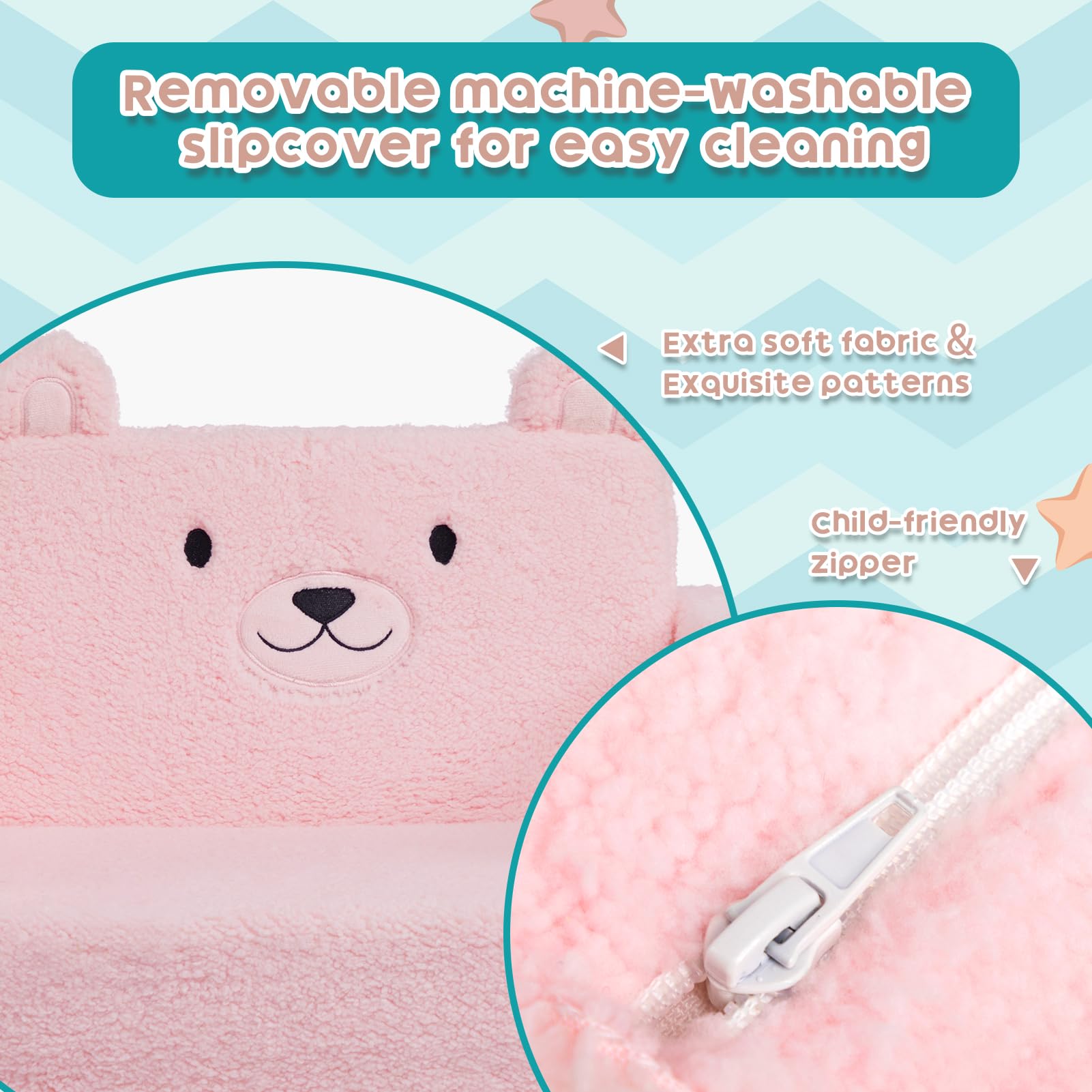 ALIMORDEN Fold Out Toddler Couch, Comfy 2-in-1 Cuddly Sherpa Bear Chair for Kids, Convertible Sofa to Lounger, Kids Cozy Corner Play Couch for Boys and Girls, Pink