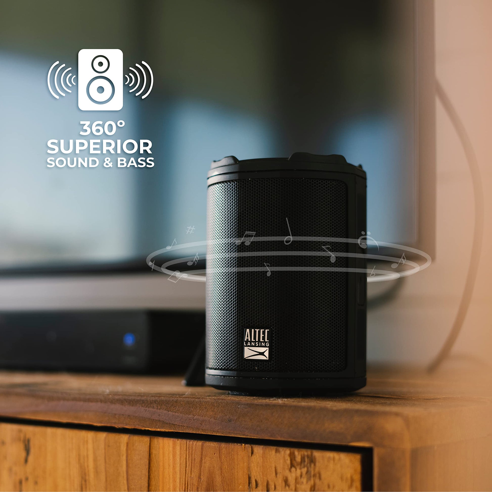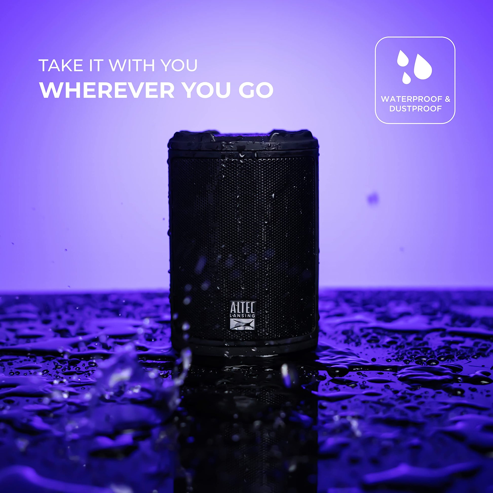 Altec Lansing - HydraMotion Wireless Bluetooth Speaker with 360 Degree Sound, Portable IP67 Waterproof for Outdoors, Shockproof, Snowproof, Everything Proof, 12 Hour Playtime (Black)