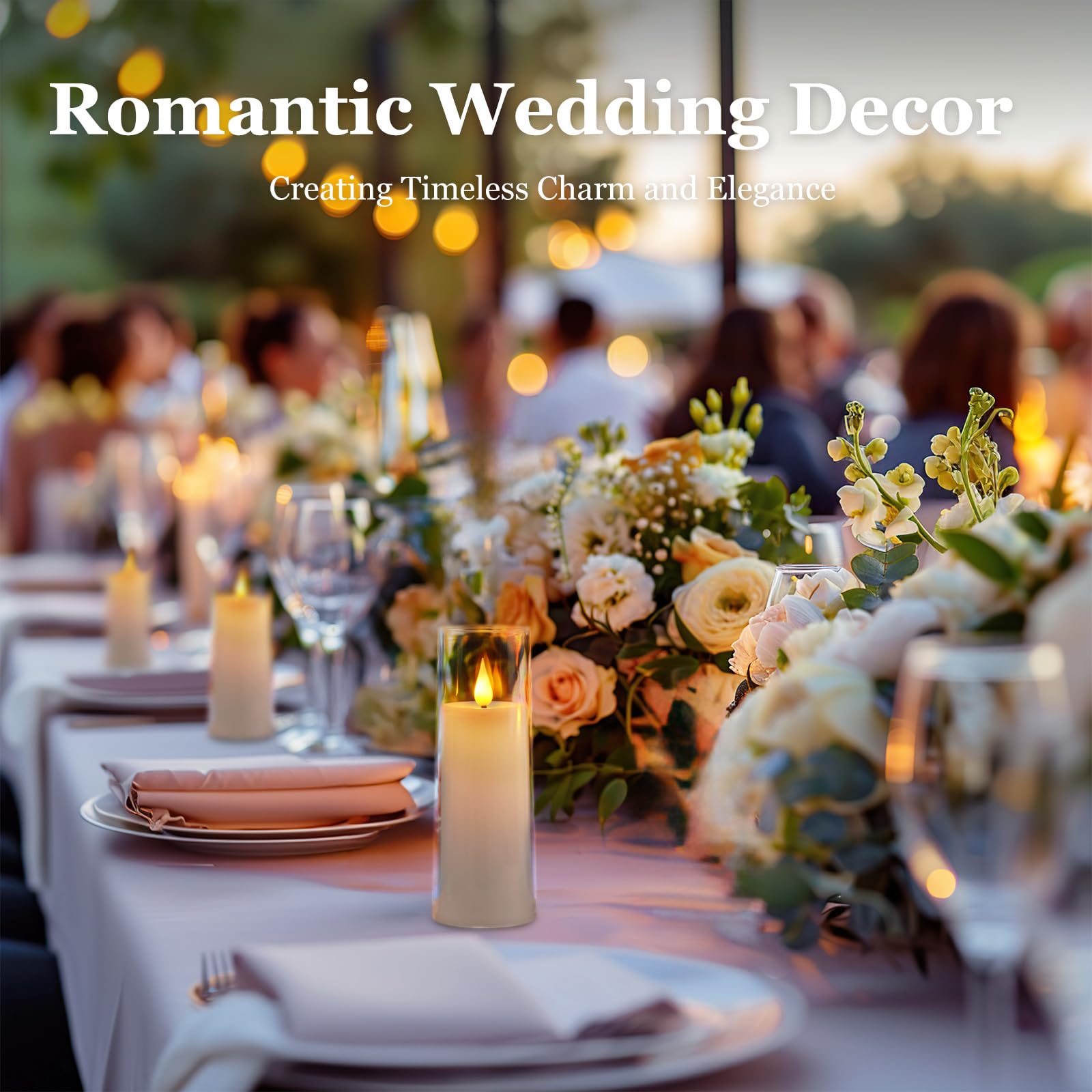 - Realistic Flameless Candles: Acrylic Candle Shell + 3D flame, flickering softly and giving these battery candles a warm yellow glow, creating a cozy feeling, which is perfect for home, festival decorations,and gifts