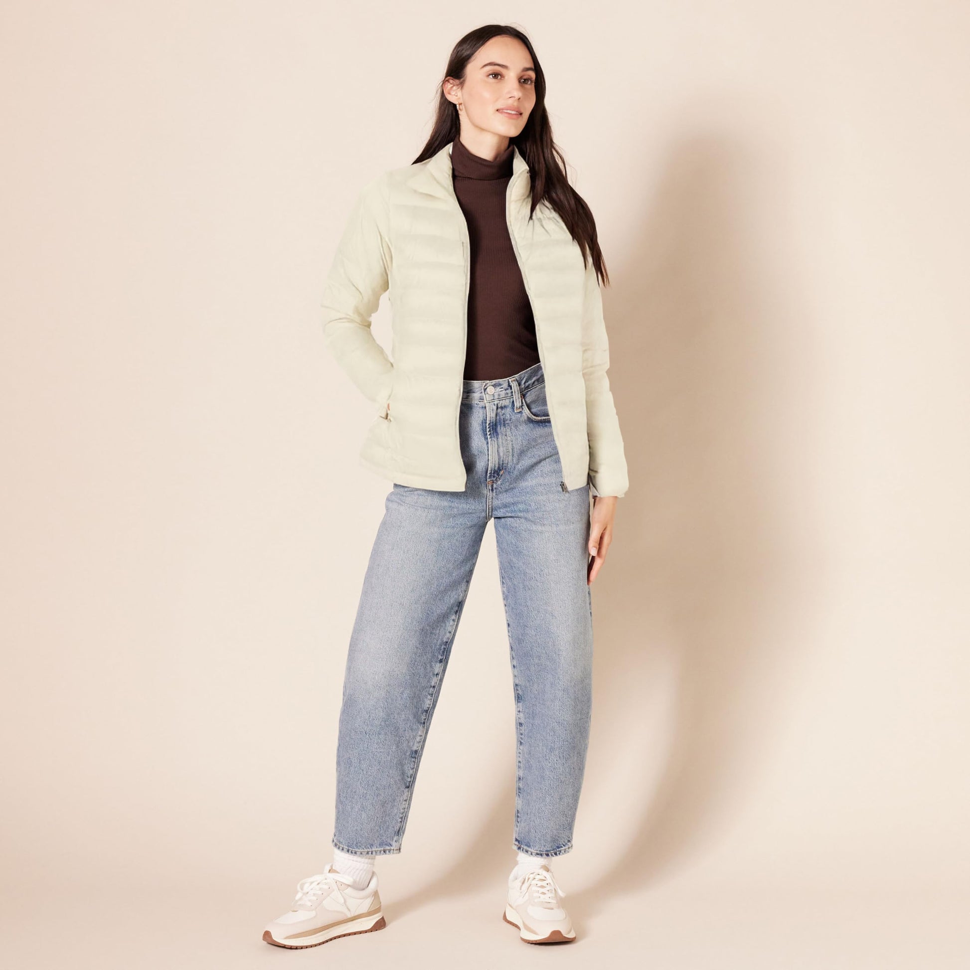 Amazon Essentials Women's Lightweight Long-Sleeve Water-Resistant Packable Puffer Jacket (Available in Plus Size), Stone, Large