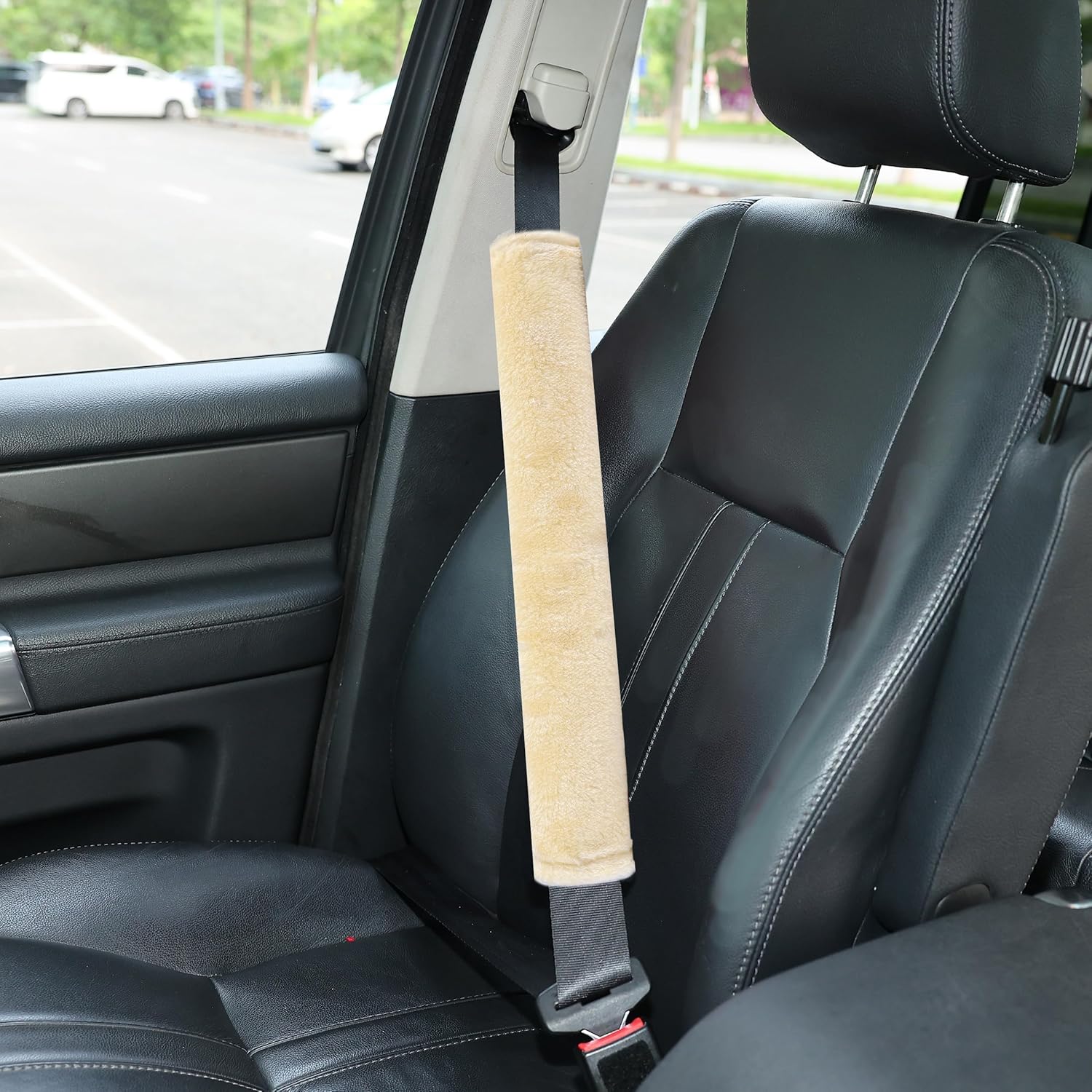 Amooca Soft Faux Fur Universal Fit Seatbelt Cover Car Truck SUV Airplane Seat Belt Shoulder Pad for Carmera Backpack Straps Neck Cushion Protector 2 Pack 10.5in Dark Gray
