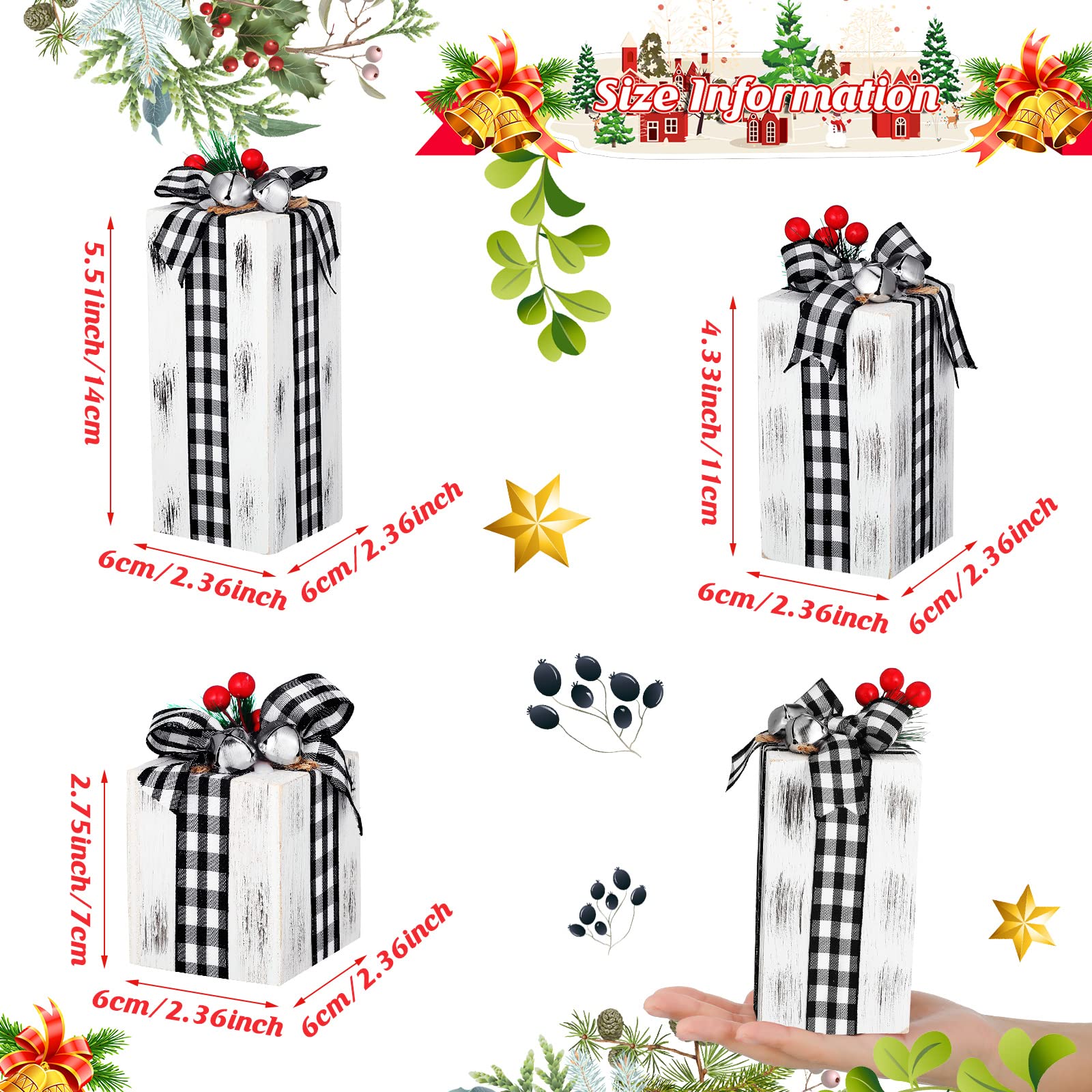 Amyhill 3 Pcs Christmas Wooden Gifts Box Decor Christmas Plaid Presents Table Centerpieces Rustic Wooden Gifts Tiered Tray Decor with Buffalo Plaid Bowknot for Xmas Party(White,Classic)