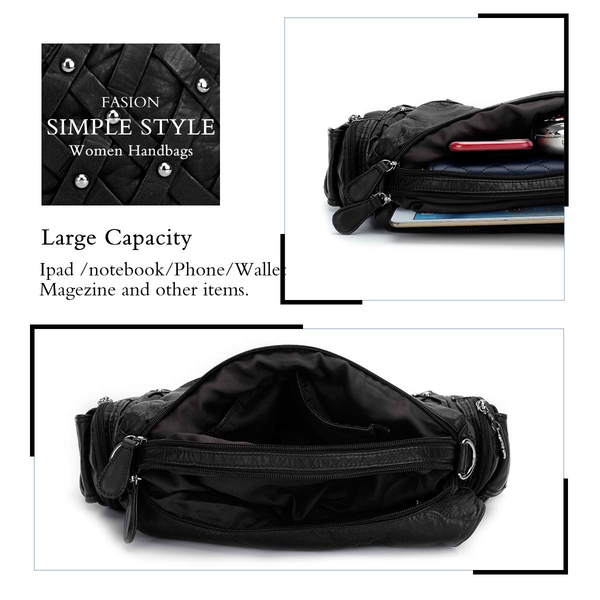 Angel Barcelo Roomy Fashion Hobo Womens Handbags Ladies Purse Satchel Shoulder Bags Tote Washed Leather Bag Black