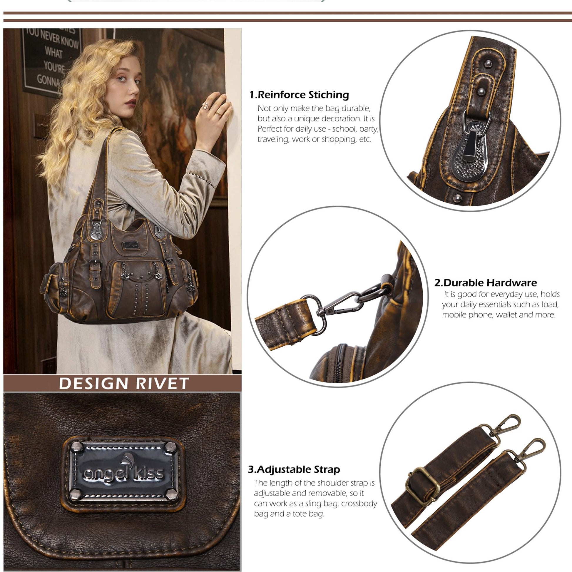 Angel Kiss Hobo Bags for Women Soft PU Leather Handbags Large Purse Shoulder Bag brown
