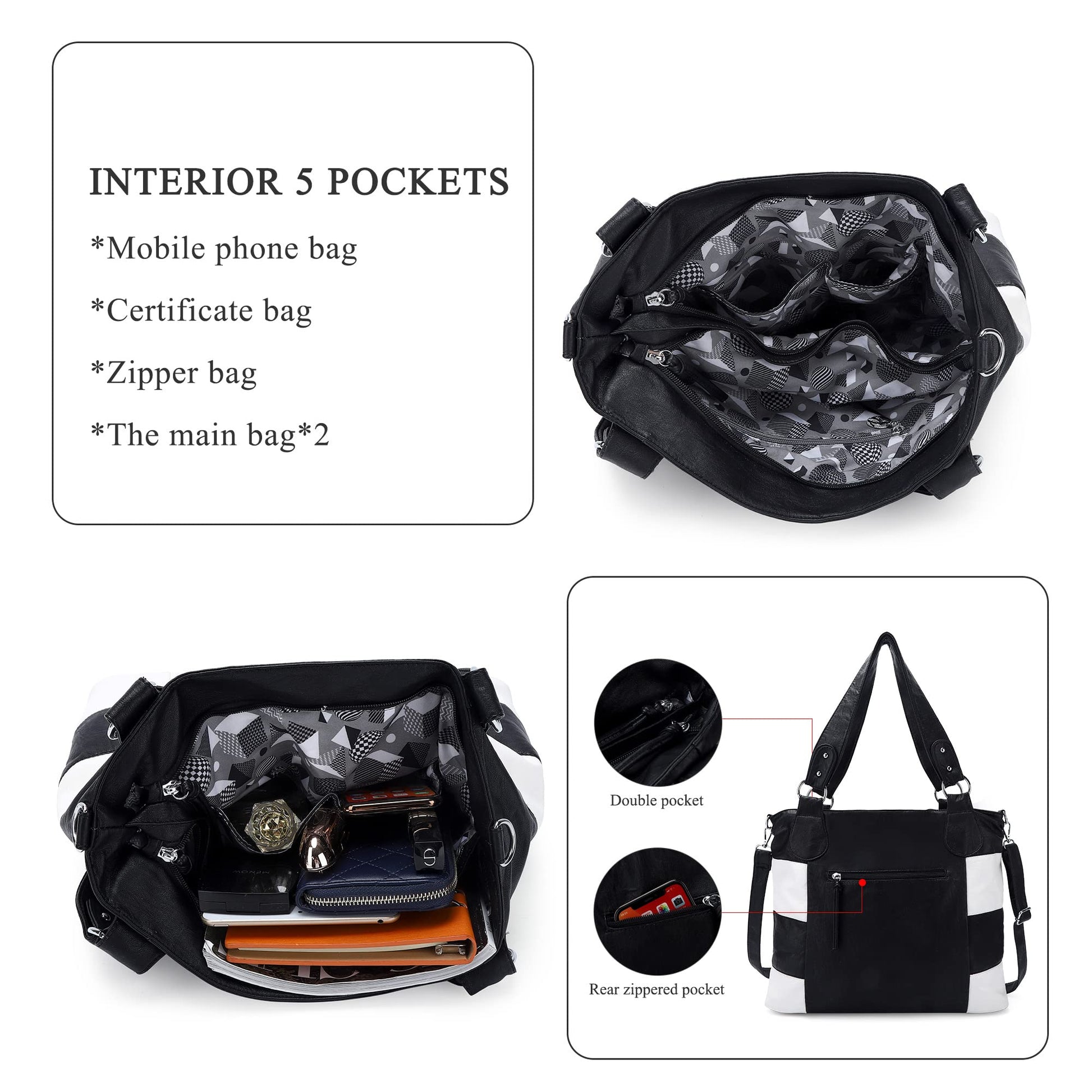 - 【Easy-organized】:Double zippers main pockets, with one small zipper pocket and one slot pocket inside.can holds everything you need, including your iPad, cell phone, books(A4), umbrella, keys, wallet, sunglasses, lipstick ,facial tissue and other stuffs.
