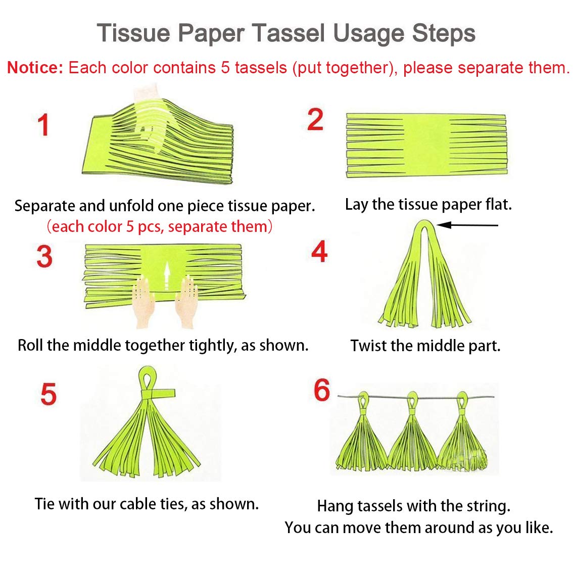 - WHAT YOU GET - 12 pcs pennant banner (pre-strung), 6 of metallic gold and 6 banners with gold stripes, 15 tassels (easy ASSEMBLY required) + instruction + cable ties + string, 5 each of tan/ivory and metallic gold (each color contains 5 tassels (separate them)).