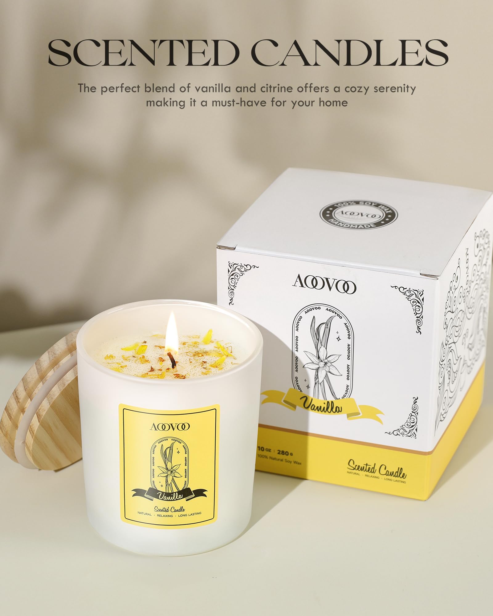 AOOVOO Vanilla Scented Candles for Women - Aromatherapy Candle with Crystals Inside, 10oz Soy Candles for Home Scented, Birthday Gifts Mothers Day Candle for Women Mom