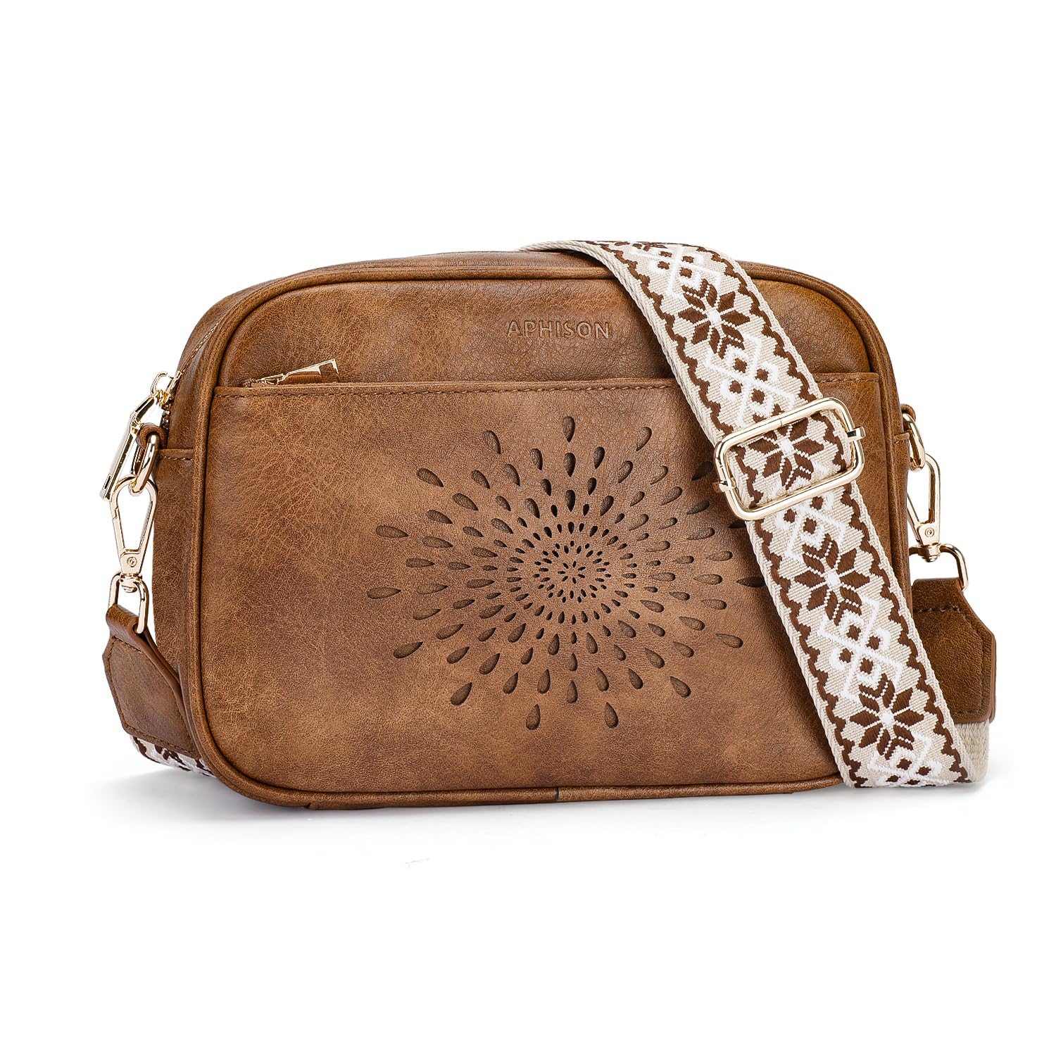 APHISON Crossbody Bags for Women Trendy,Vegan Leather Small Crossbody Purses Shoulder Handbags with Adjustable Strap Brown