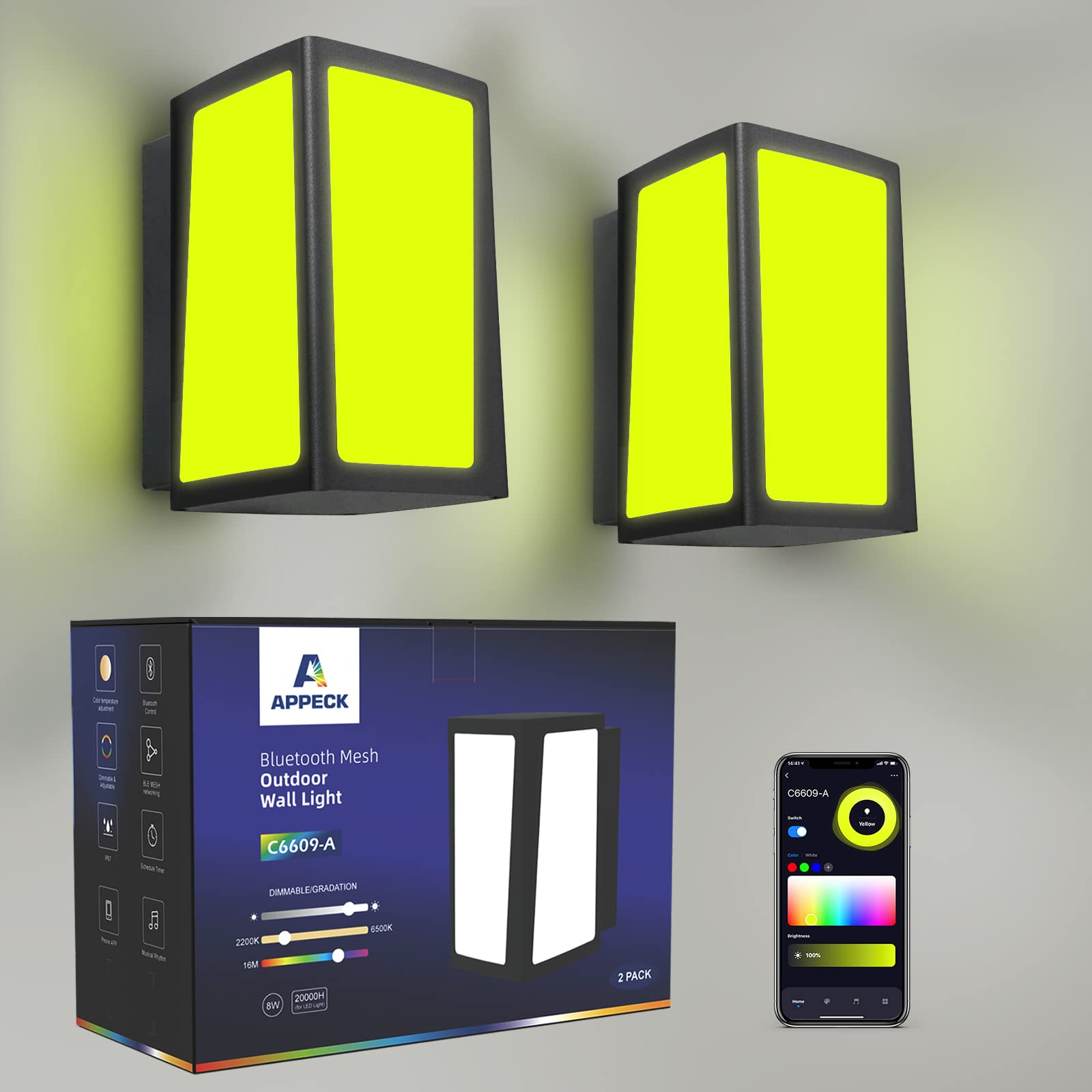 APPECK Outdoor Wall Light 2 Pack, 16W Modern Wall Lamp IP67 Waterproof Wall Sconce, RGBCW 16 Million Colors Exterior Wall Light Fixture for Garage Walkway Backyard Garden
