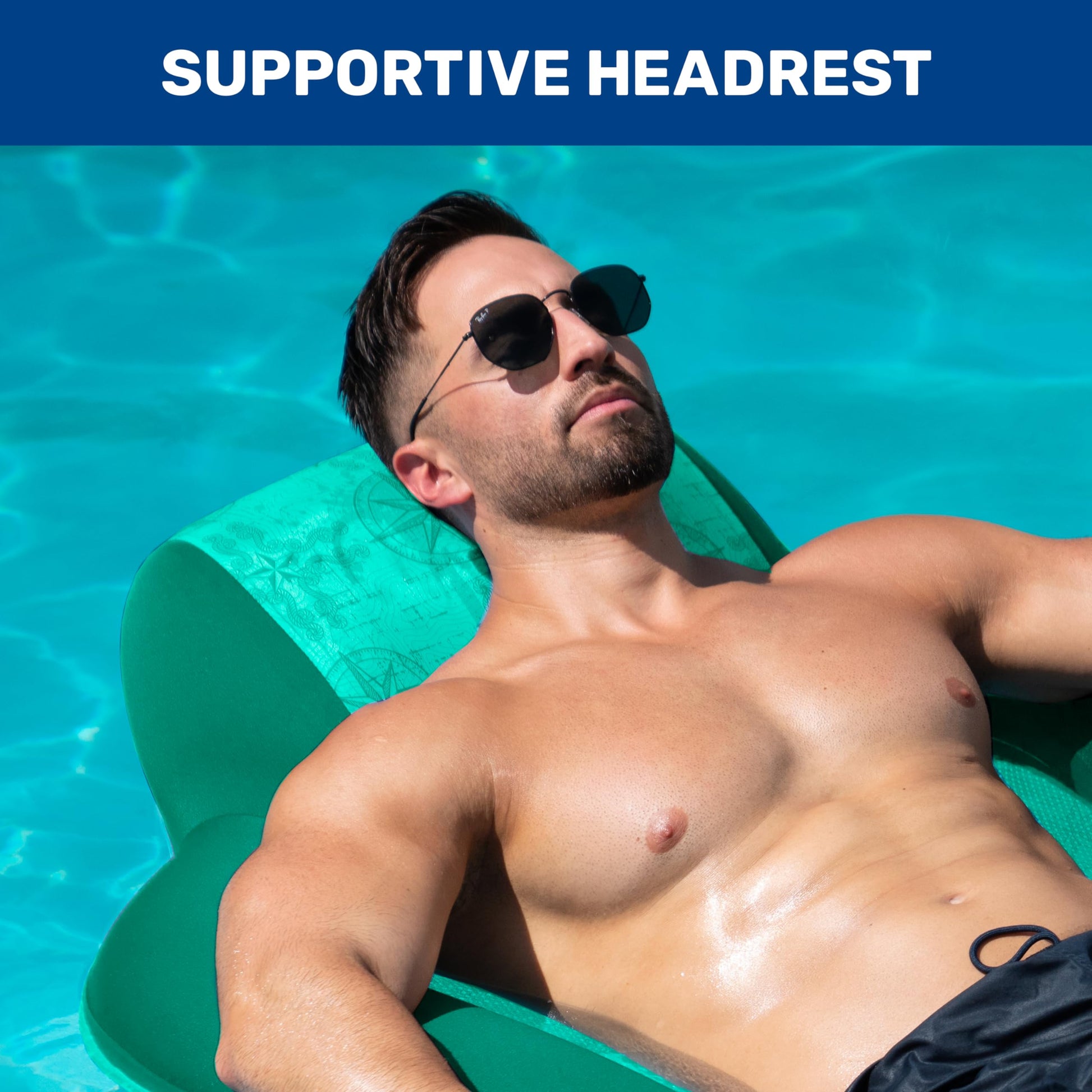 Aqua Luxury Water Pool Lounge, Extra Large, Inflatable Pool Floats for Adults with Headrest, Backrest, Footrest and Cupholder, Teal Compass