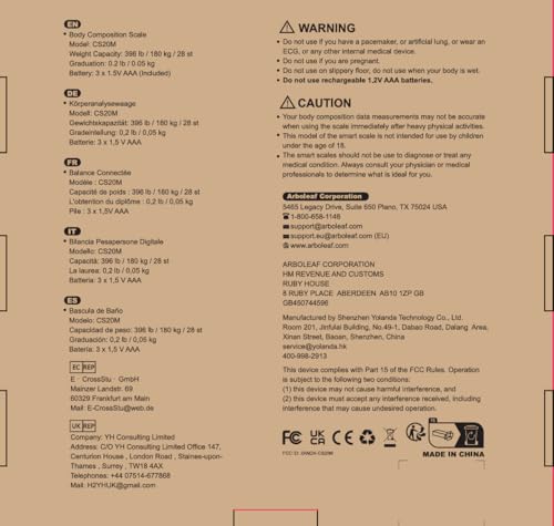 - Full Composition Analysis - arboleaf weight scales is designed to offer completed body composition analysis. Weight will be directly shown on the screen, and the rest of 13 data, like BMI, body fat percent, and muscle mass will be displayed on the app when you sync with our free app.