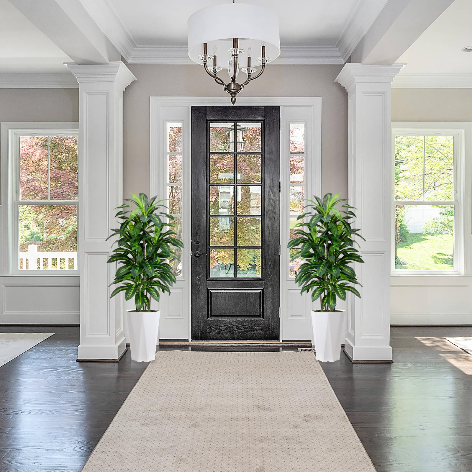 - Perfectly Proportioned Planter: Designed to complement the fake dracaena tree, our planter offers the ideal blend of style and functionality. Each set includes everything you need: the tree, planter, and artificial moss, so you can skip the extra purchases and enjoy a hassle-free setup.