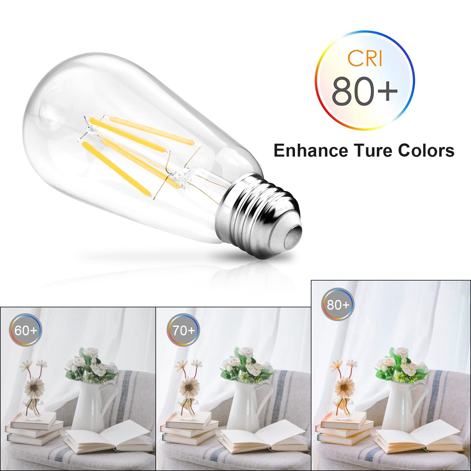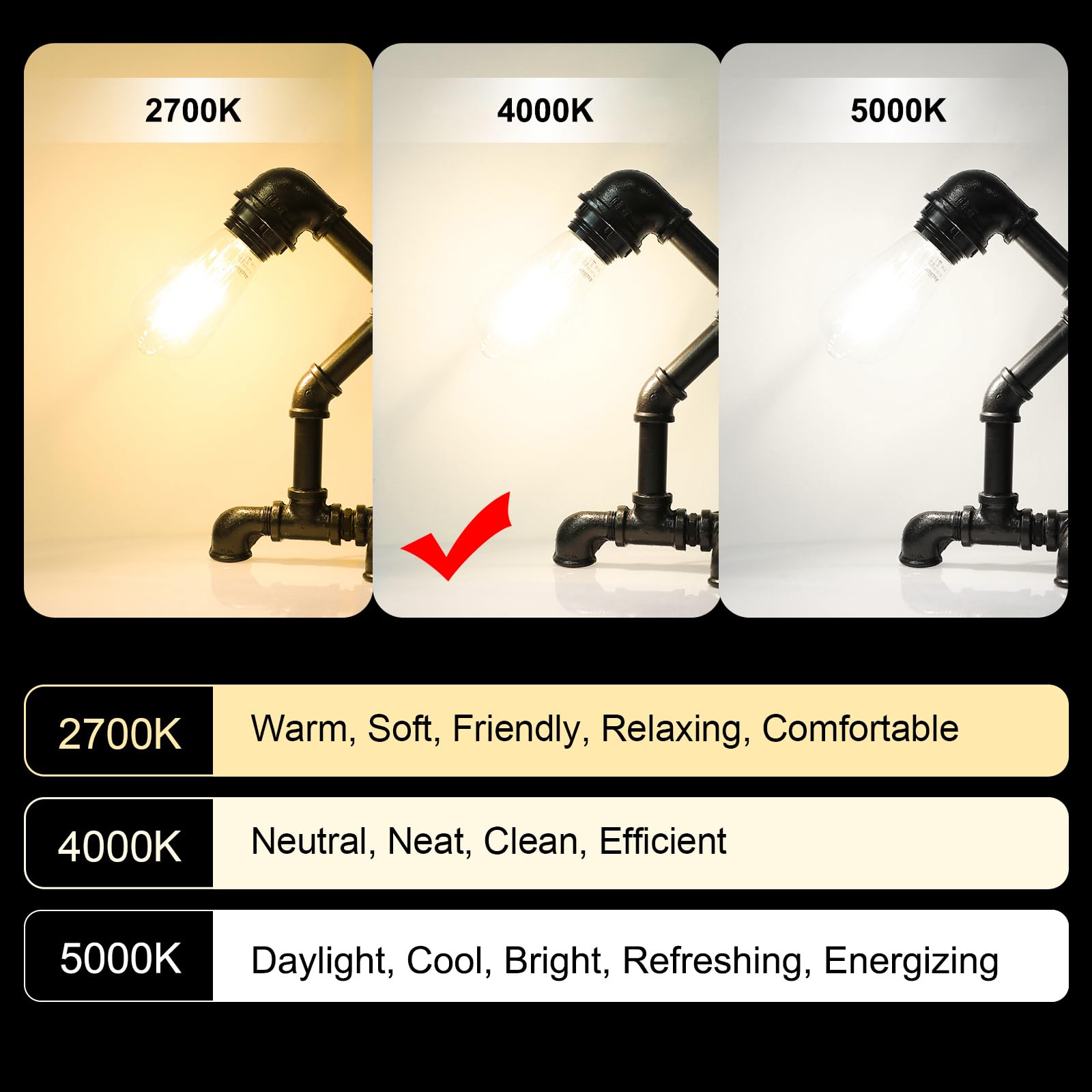 - Excellent Performance: This vintage filament bulb preserves the design of traditional edison light bulbs. Turns on at full brightness with brightness 700 lumens and 4000K cool white light. Low power consumption provides over 20,000 hours lifespan, reducing re-lamp frequency