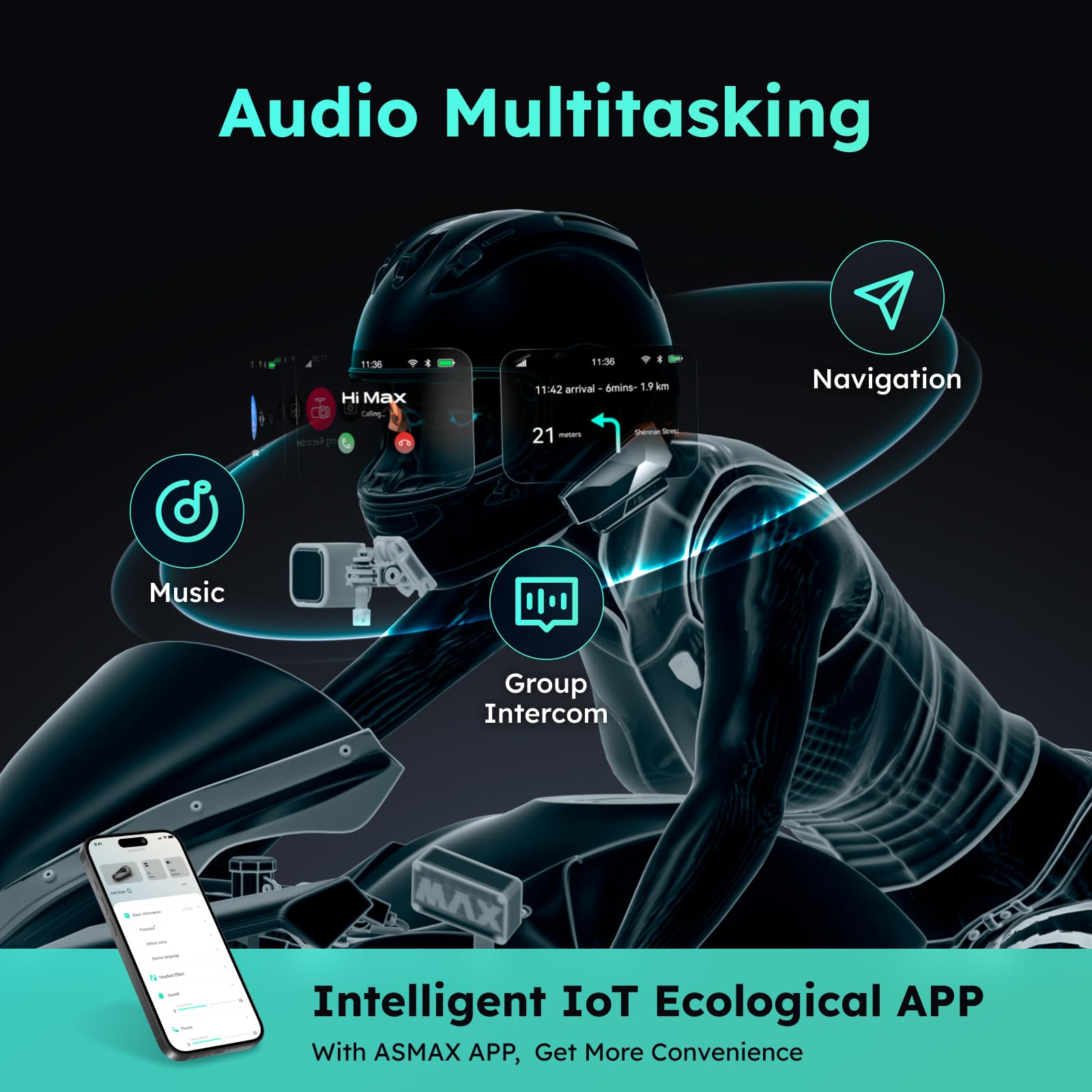 ASMAX F1 3-Mode Motorcycle Helmet Intercom for 10 Riders, Offline Voice Control Motorcycle Bluetooth Headset with Hi-Fi Speaker, Multitasking & Mesh Helmet Communication Systems, Fast Charging, 1 Pack
